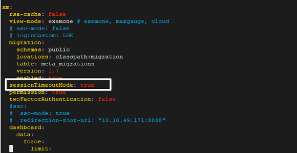 Master 권한 예외 설정: PostgreSQL(exemONE Repo DB) > xm_role_permission 테이블의 session_timeout=-1 설정 시 해당 역할 세션 타임아웃 미적용