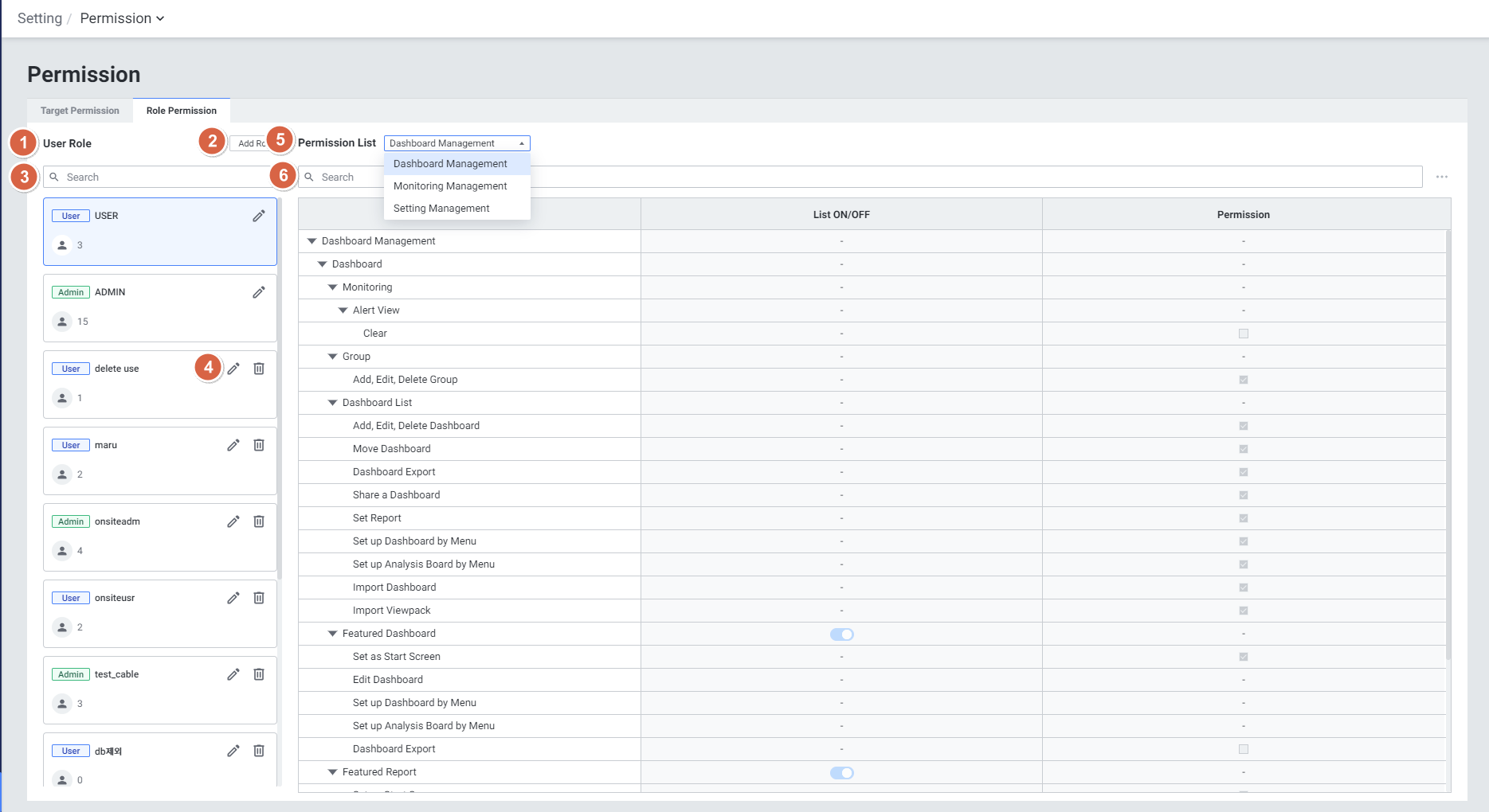 메뉴 경로: Setting > Account > Permission > Monitoring Target Permission