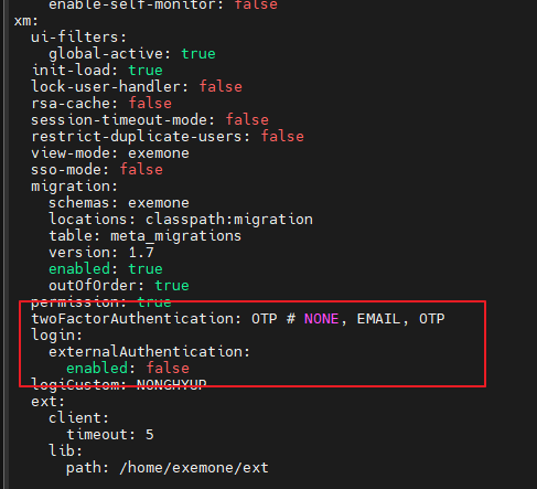 2단계: exemone-api 설정 파일에 SSO 모드 활성화