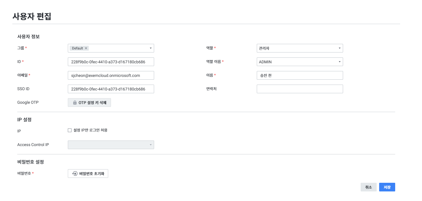 - ID/SSO ID: Azure 계정 인증 ID 값