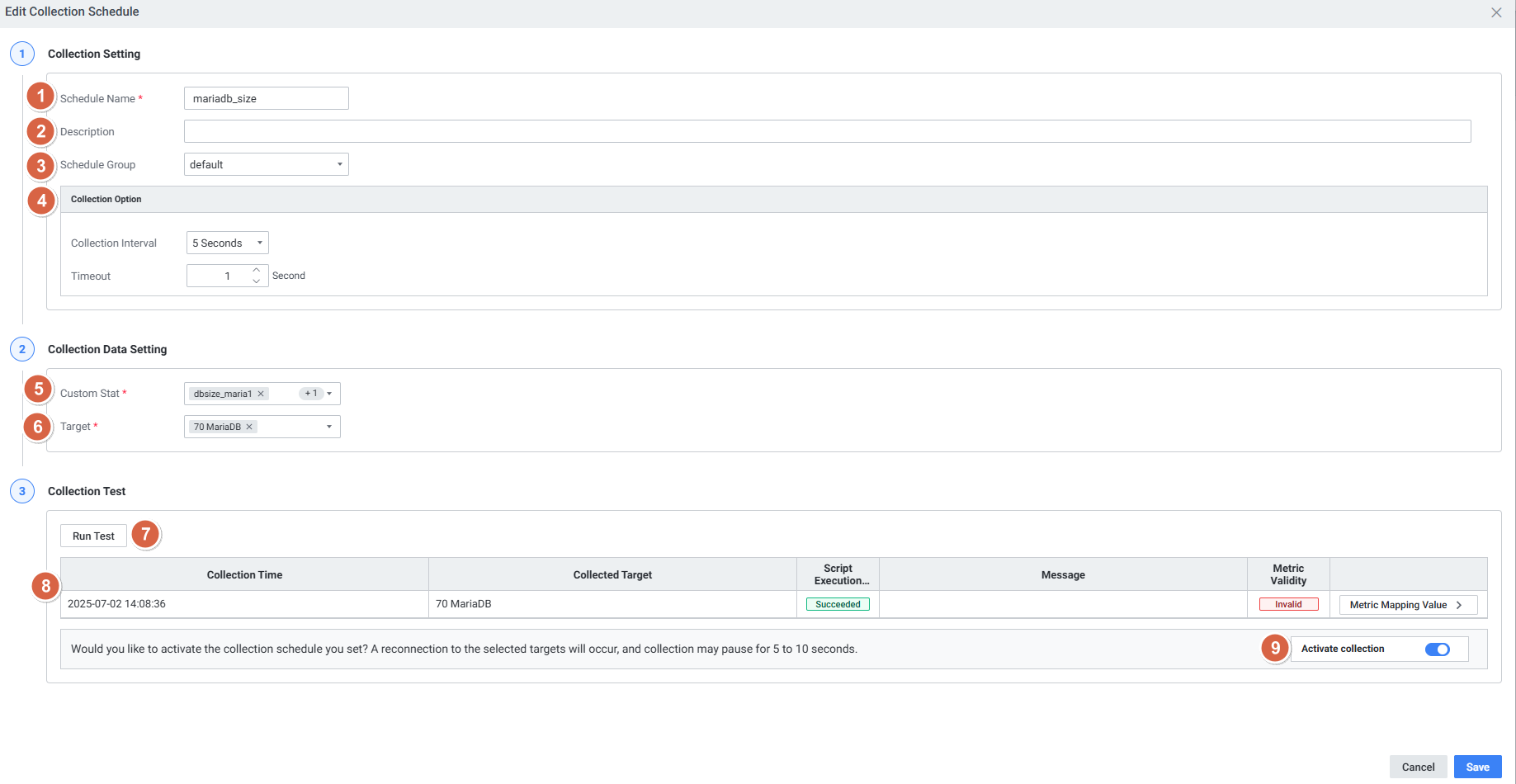 | 4 | Information | 컬렉션 기본 정보 - Metric Collection Setting Name: 이름 정보 - Description: 설명 정보 |