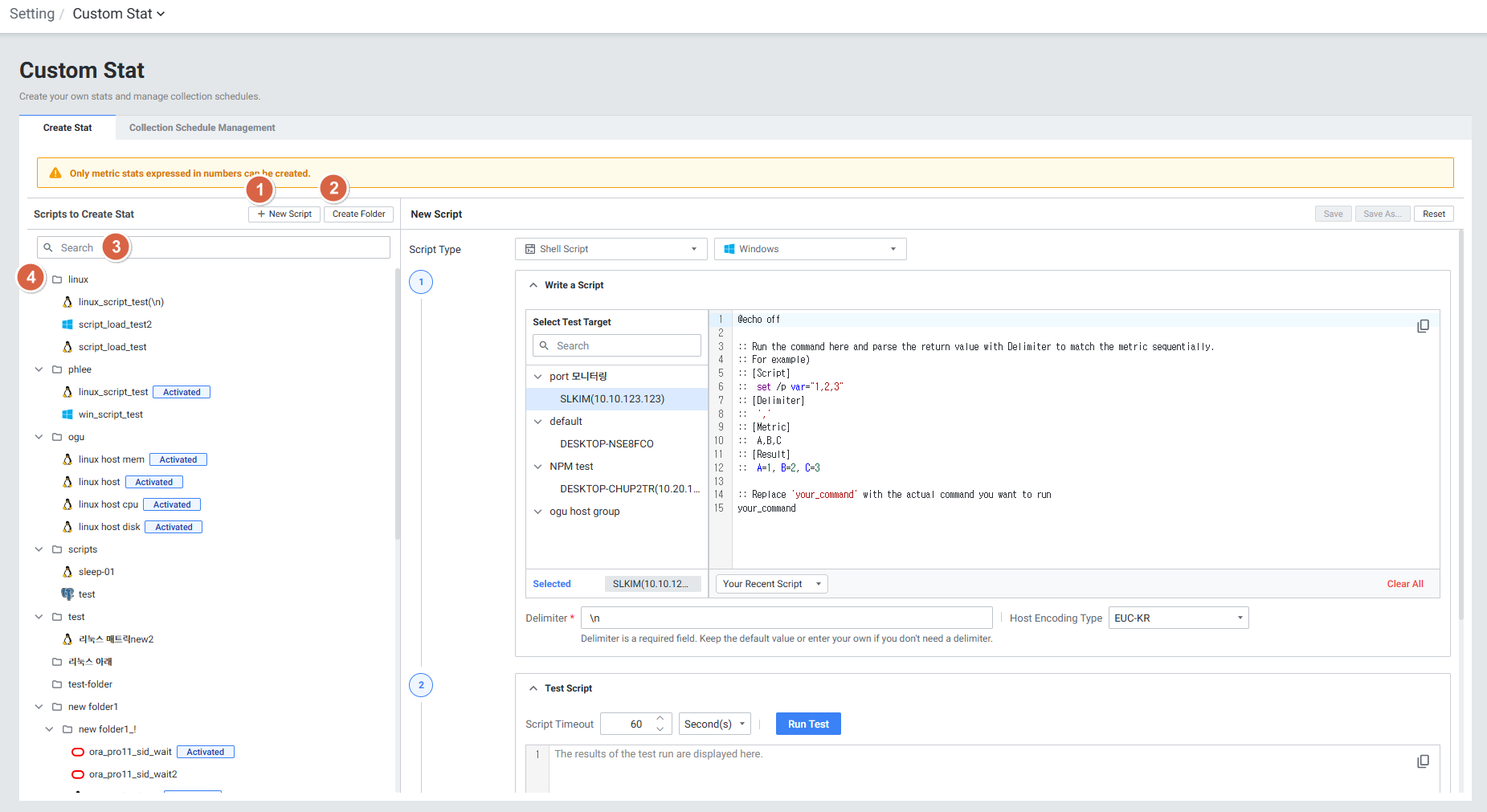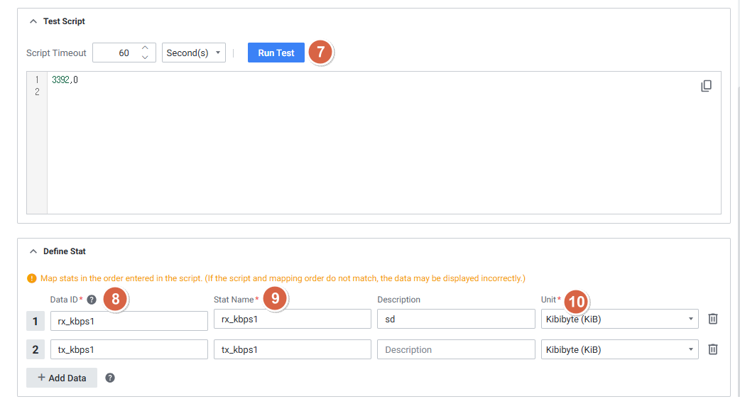 1. Setting > Management > Custom Stat > New Script