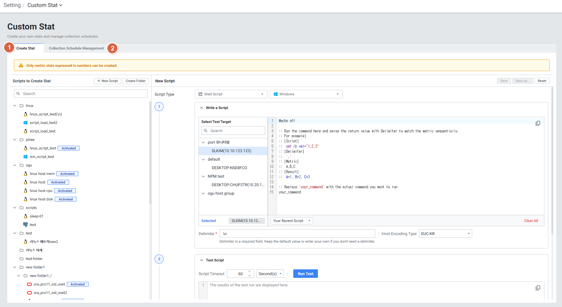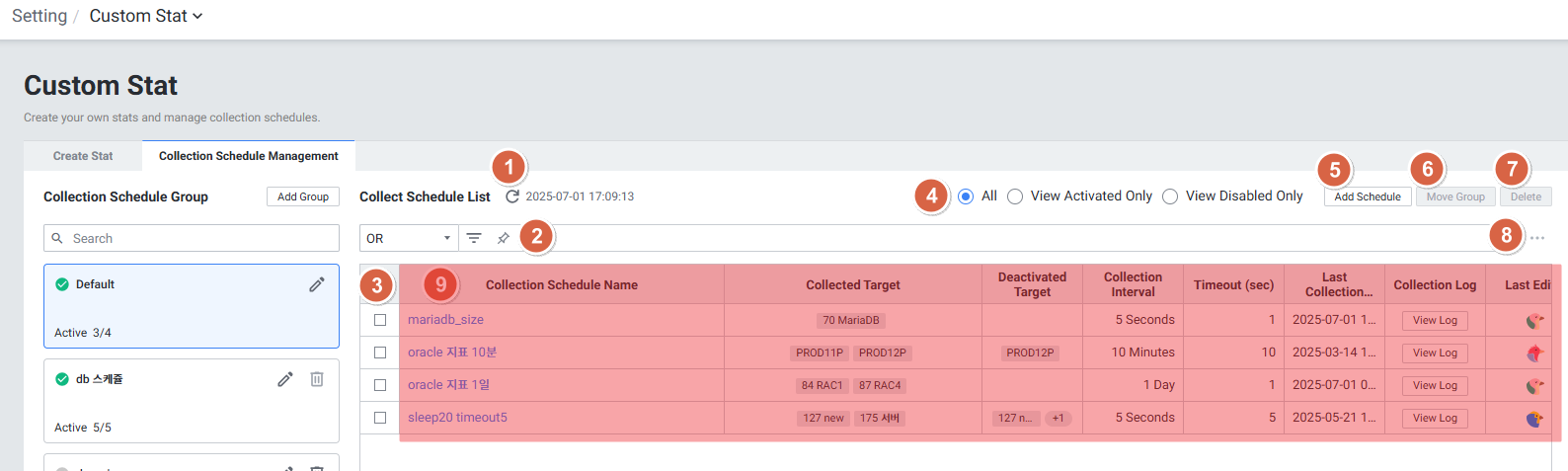 | 2 | Collection Schedule Management | Custom Stat에서 생성한 지표를 수집하는 스케줄을 생성합니다. |