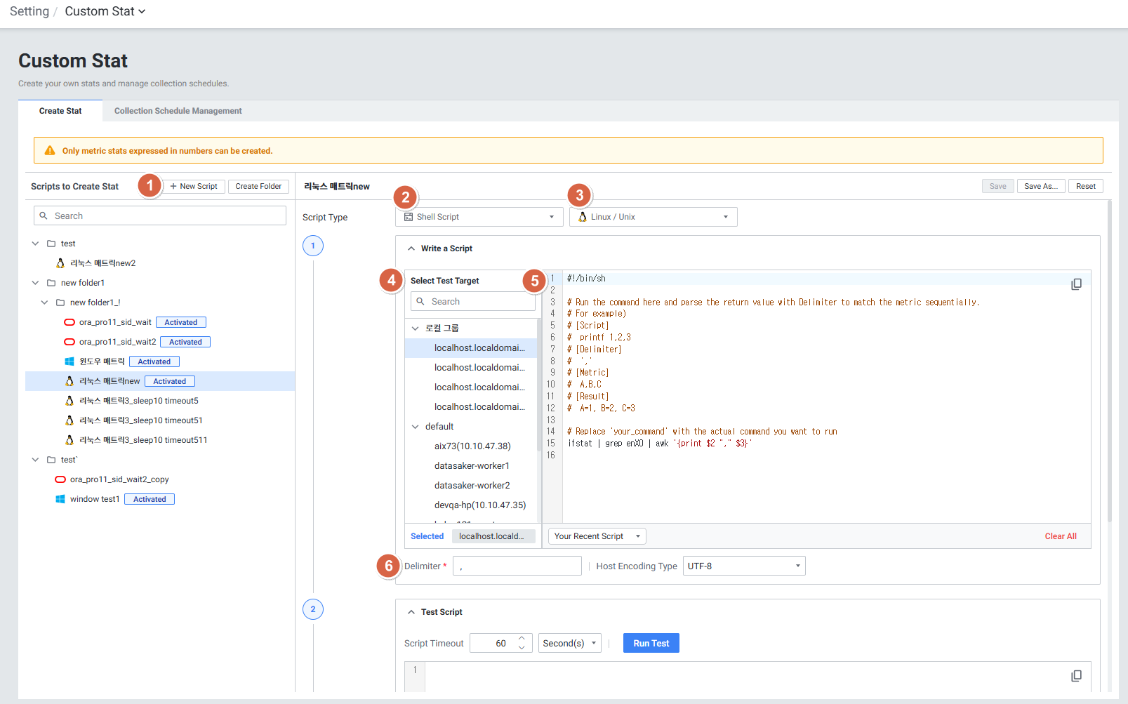 | 1 | Custom Stat | Shell Script 또는 SQL Script를 통해 사용자 지표를 생성합니다. |