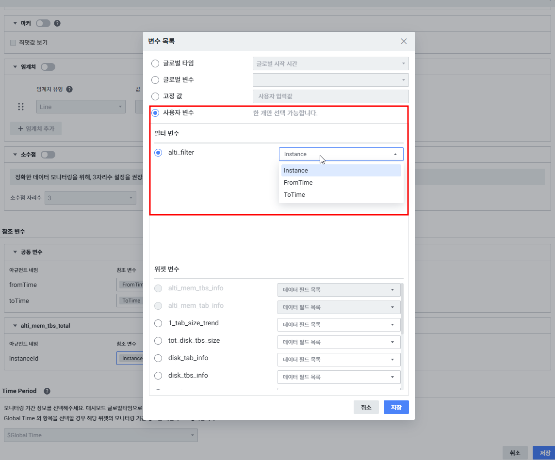 - 대시보드 > 위젯 > 변수 설정 > Global variable 목록에서 설정한 변수 선택