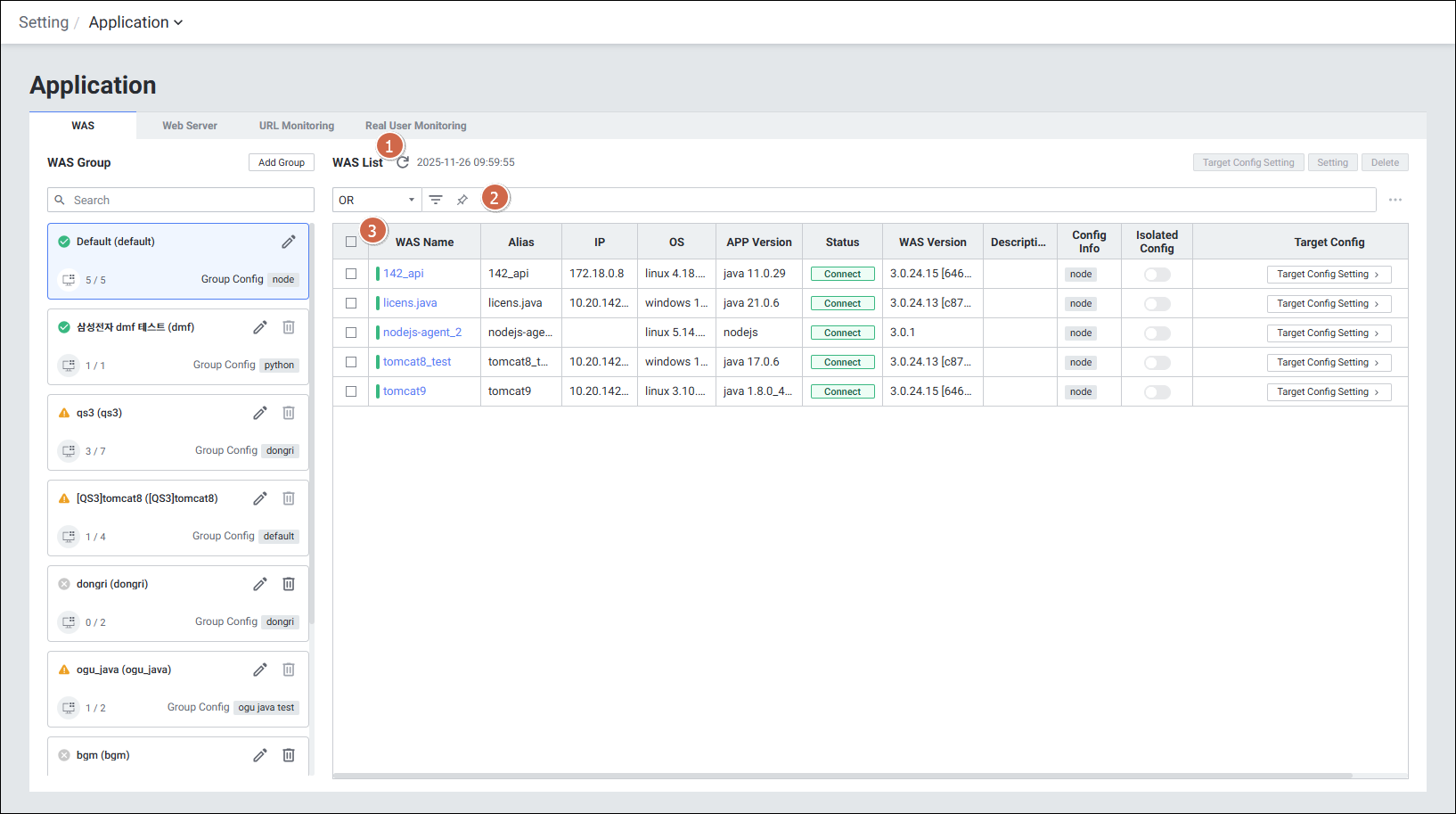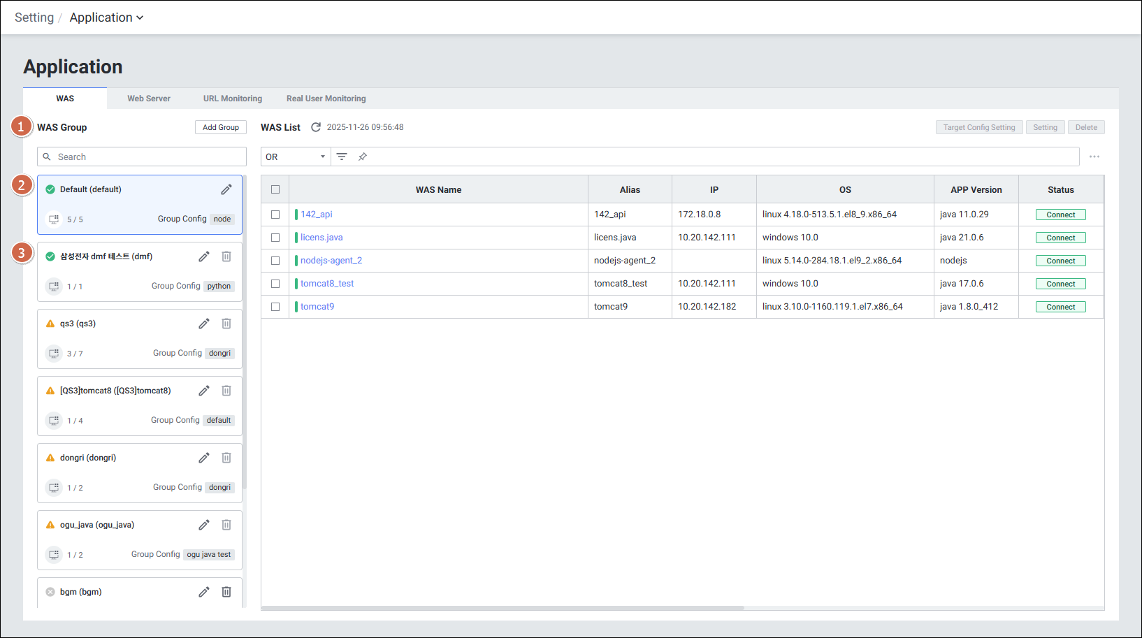 메뉴 경로: Setting > Platform > Application > WAS Group