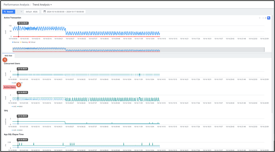 메뉴 경로: Performance Analysis > Application > Trend Analysis > WAS Stat