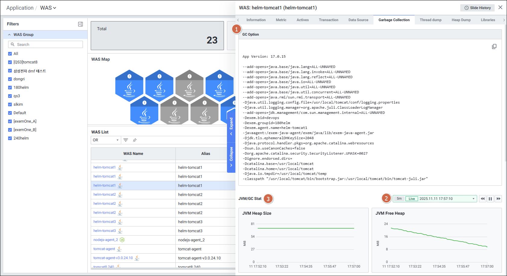 WAS NameWAS의 이름 (클릭 시 Detail Slide 오픈)