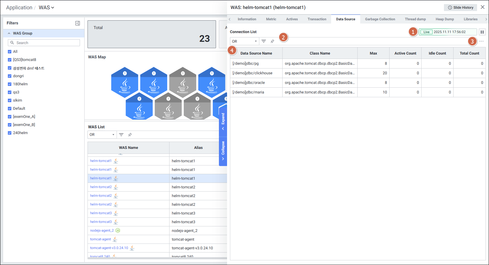 • 헥사 클릭 시 해당 WAS의 Detail Slide가 열립니다.