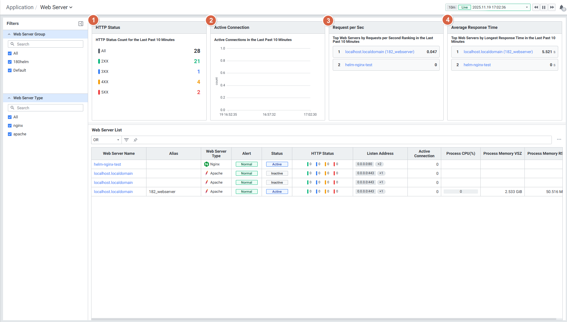 2-1. 메인 모니터링 화면 (Application > Web Server)