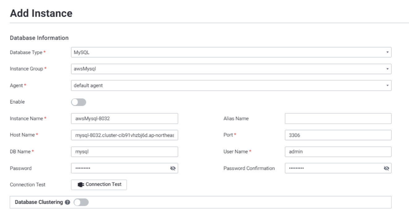 | RDS/Aurora DB 인스턴스 등록 | Setting > Database > Add Instance |