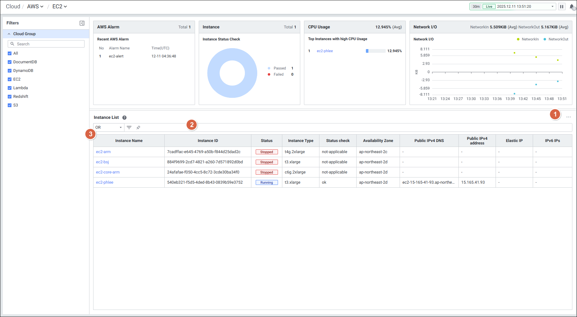 메뉴 경로: Cloud > AWS > EC2 > Instance List