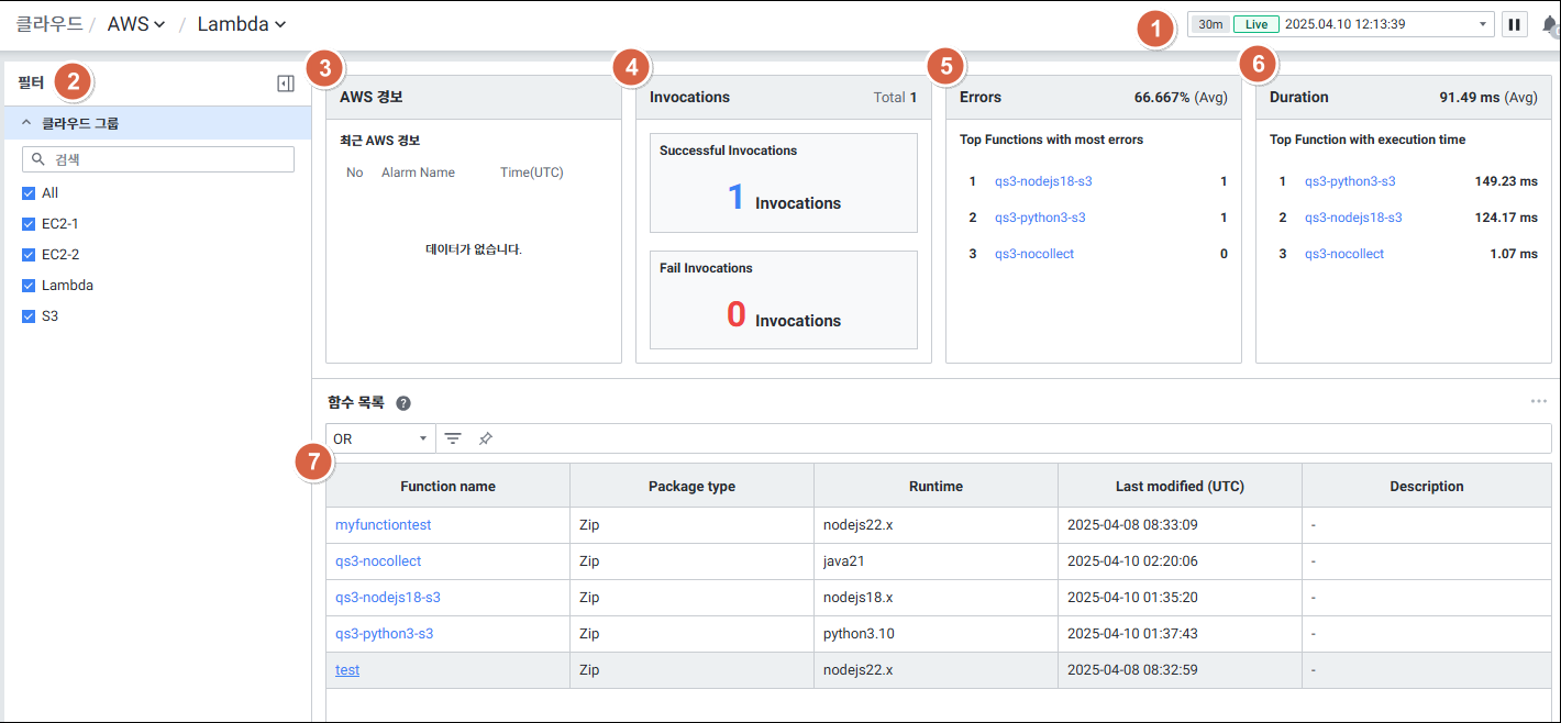 | Lambda 모니터링 | Cloud > AWS > Lambda |