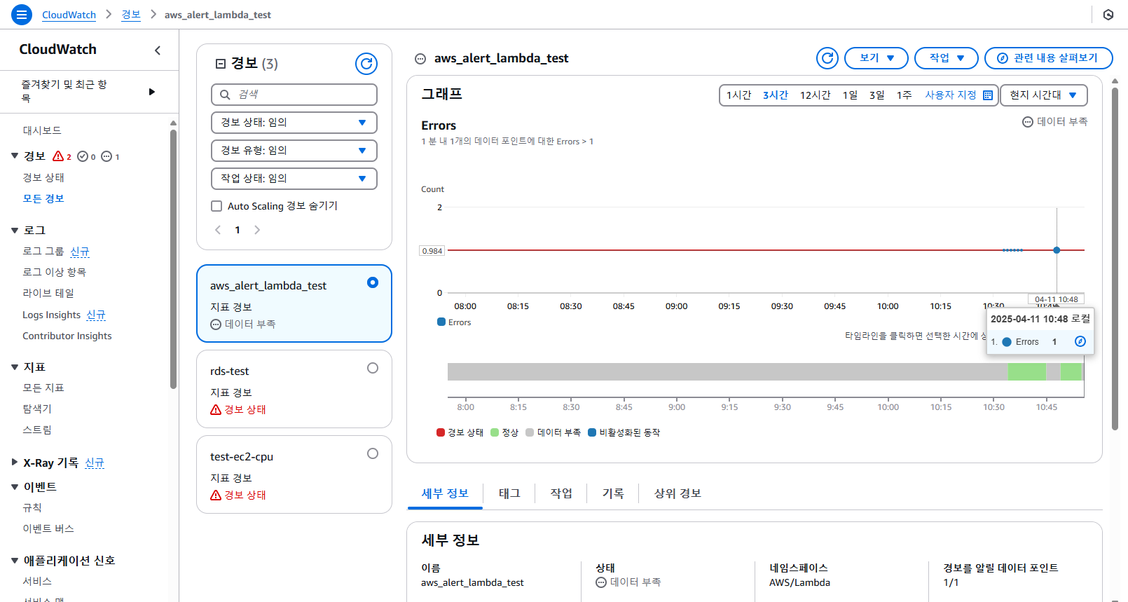| Alarm Status | CloudWatch에서 설정된 경고(Alarm)의 현재 상태 |