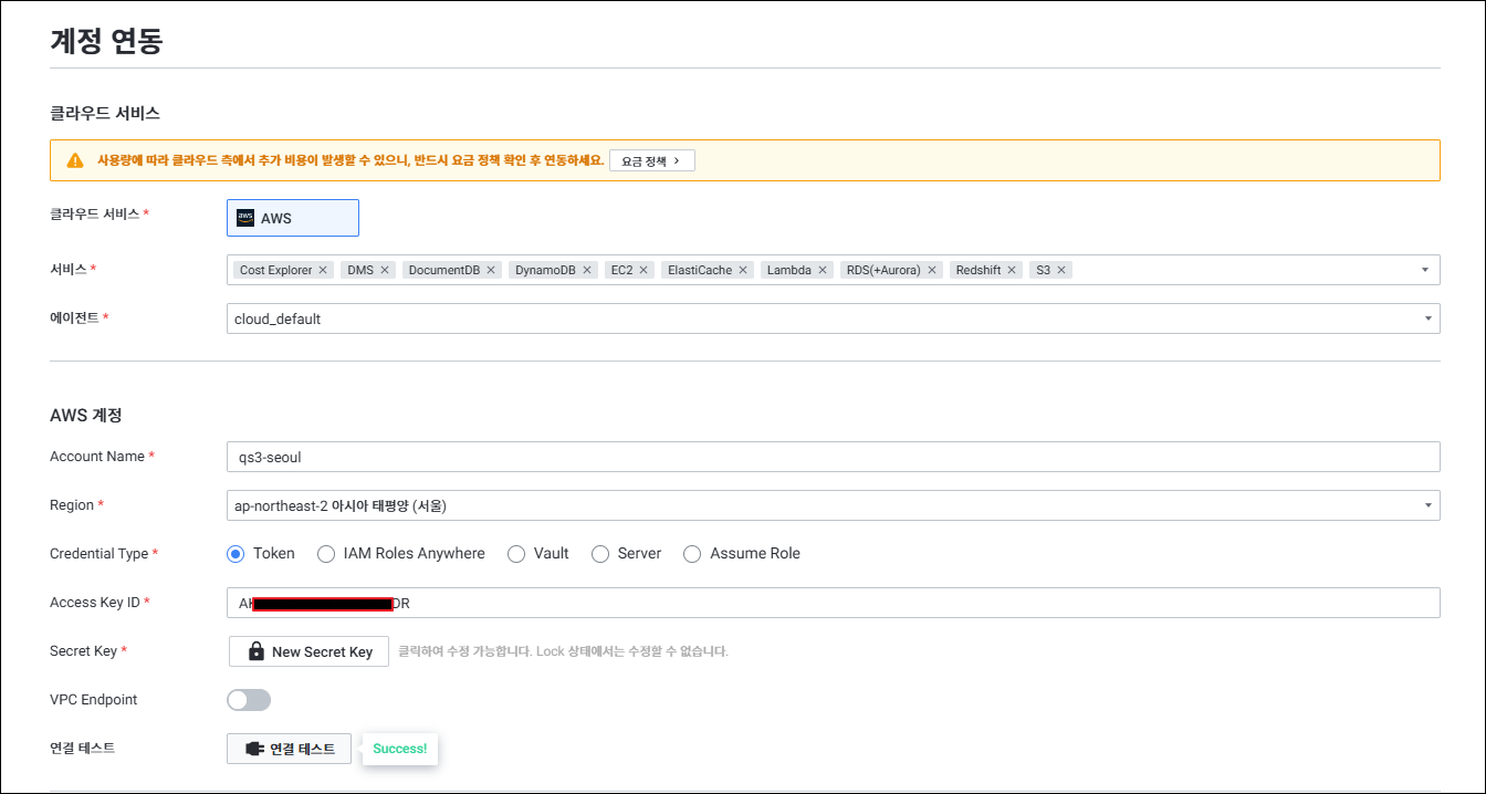 | AWS 계정 등록 | Setting > Cloud > Account |