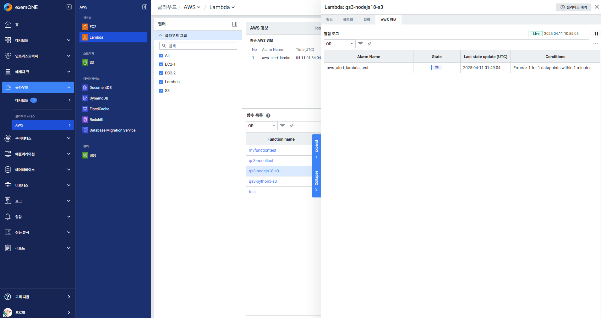 [Step 3] exemONE에서 AWS 경보 모니터링 확인