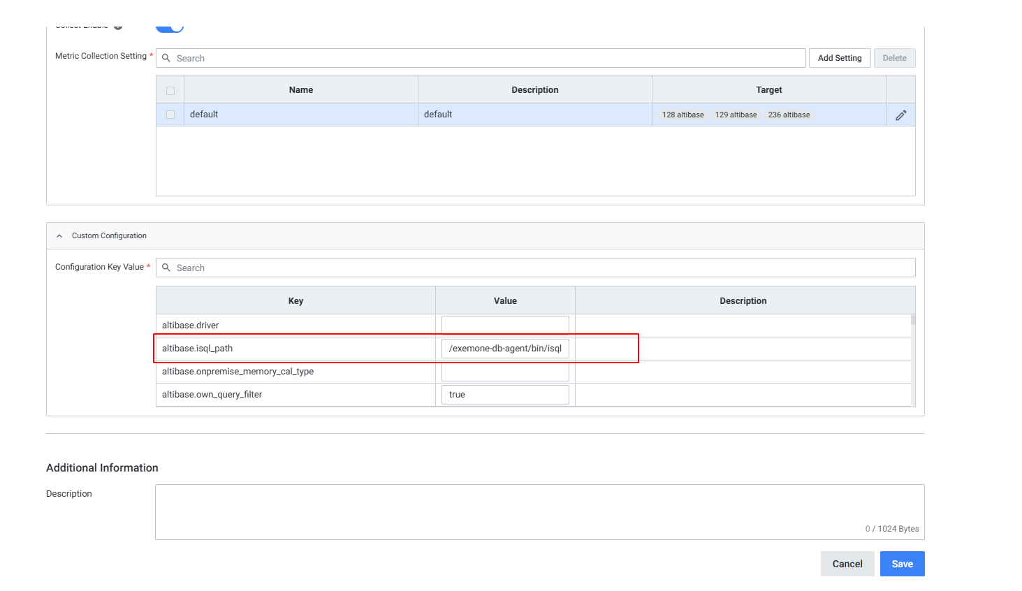 Setting > Database > Edit Instance > Custom Configuration에서 altibase.isql_path 옵션 값을 수정: