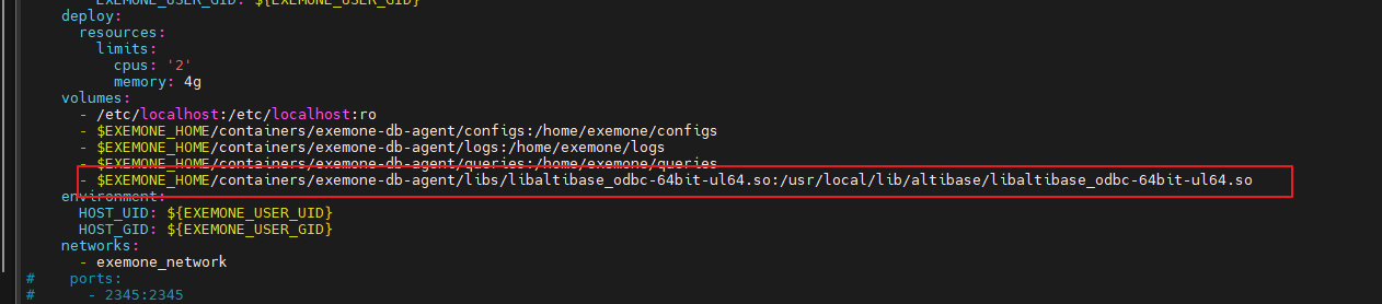 libaltibase_odbc-64bit-ul64.so로 변경 docker-compose.yml파일에 볼륨 경로 추가: