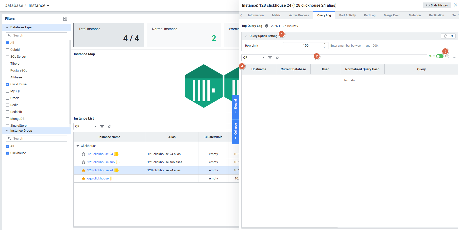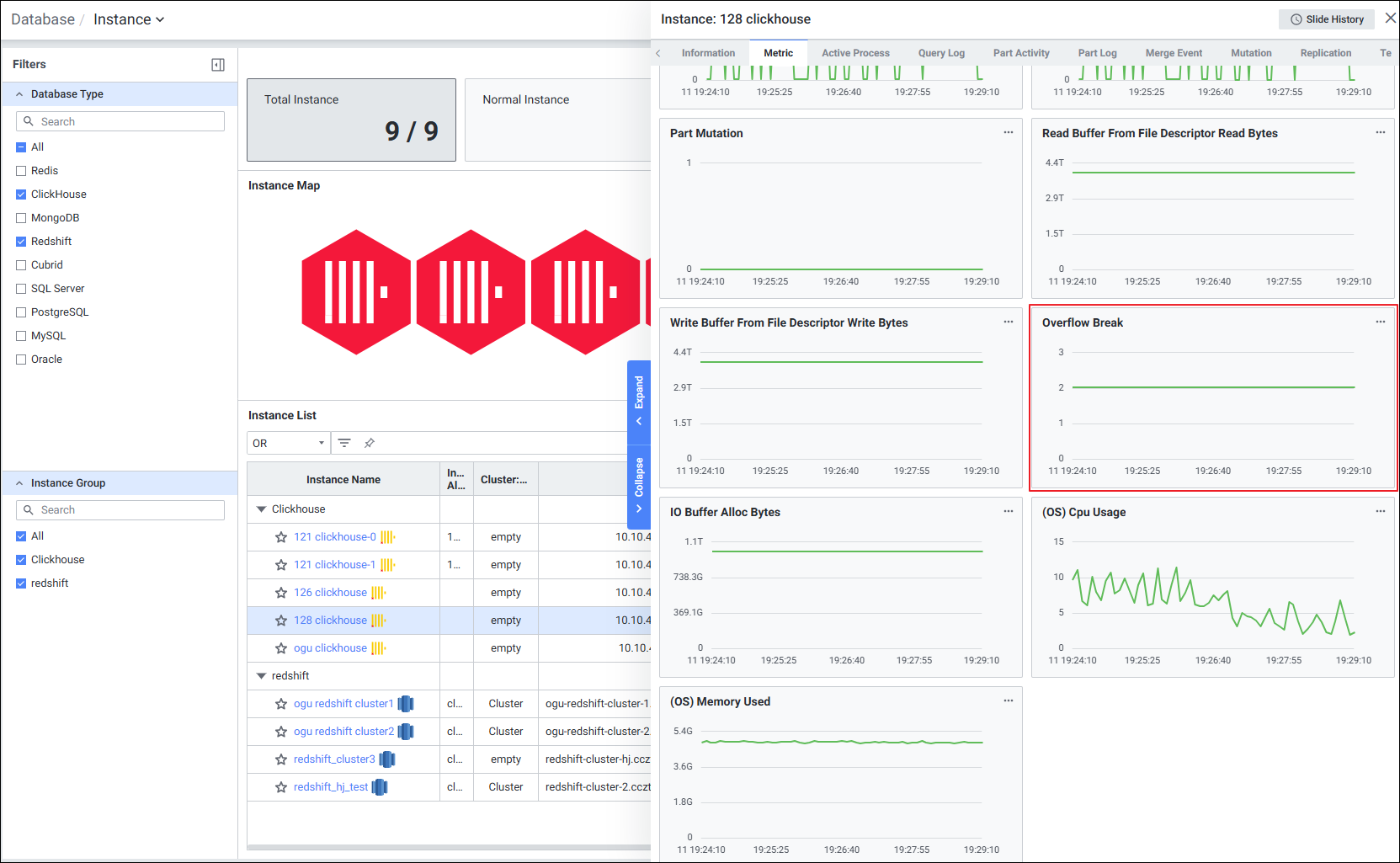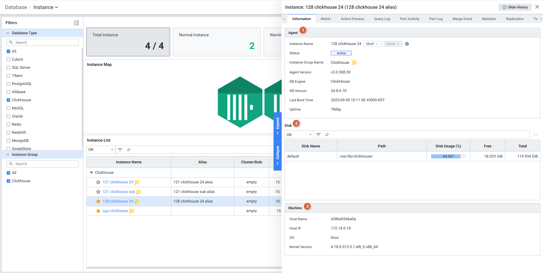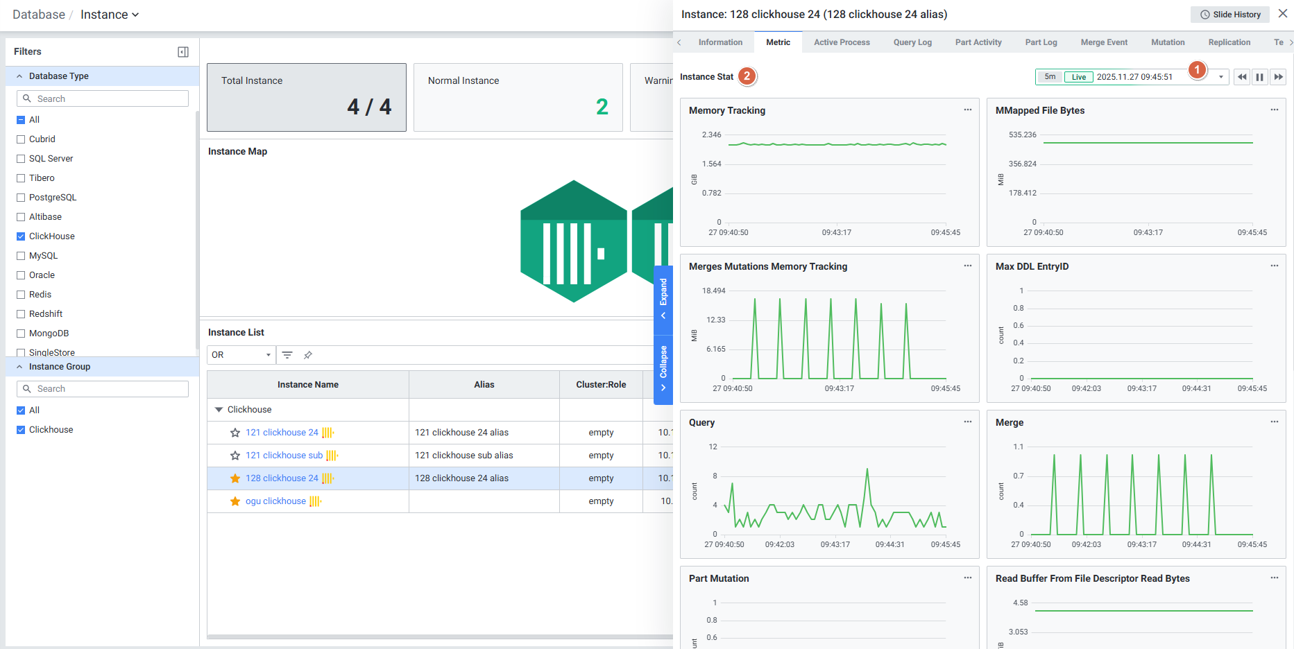 참고 문서: Instance Detail Slide - ClickHouse, ClickHouse 인스턴스 디테일 데이터 확인