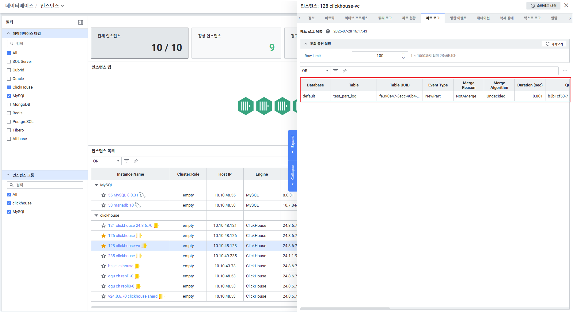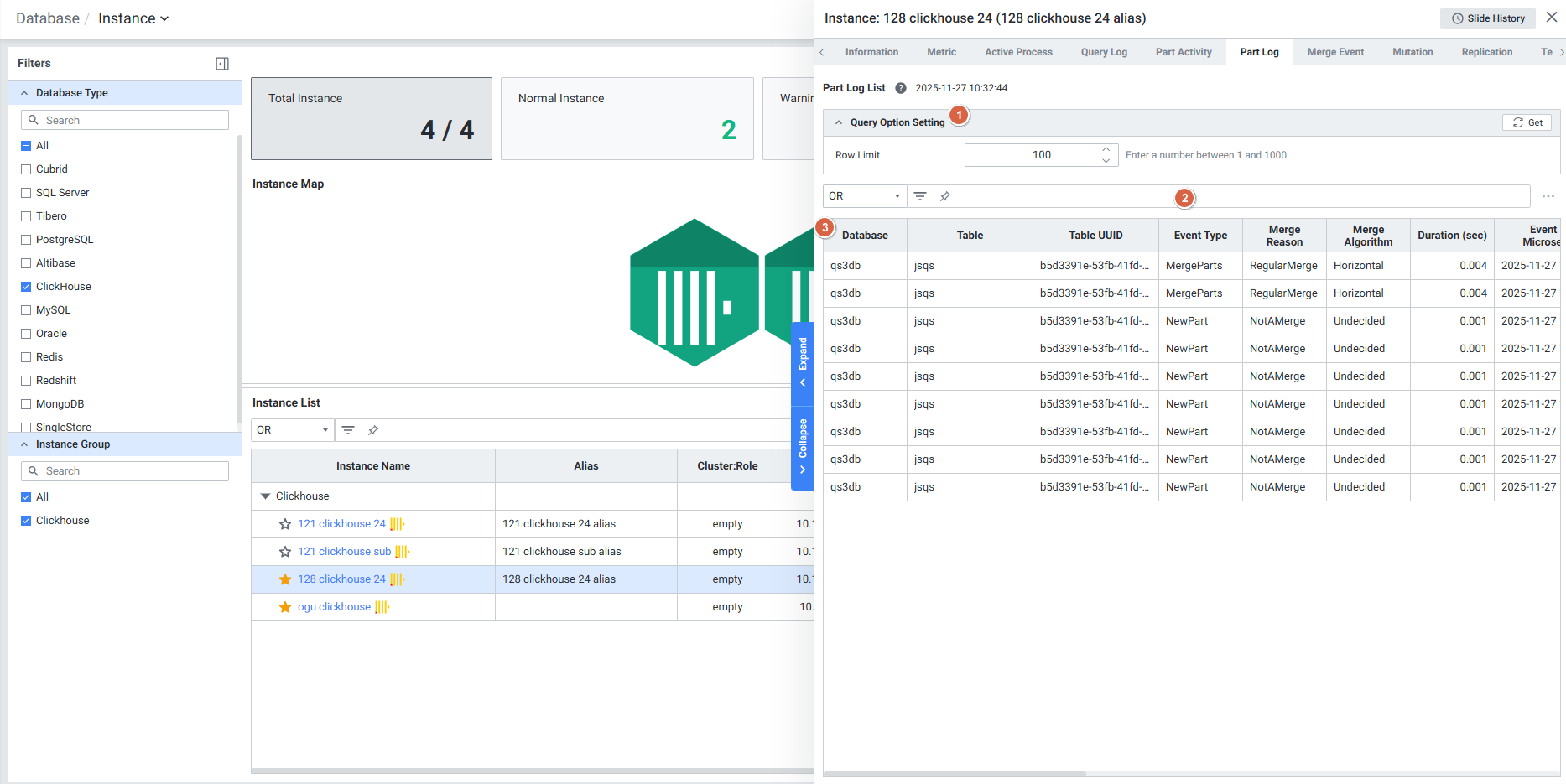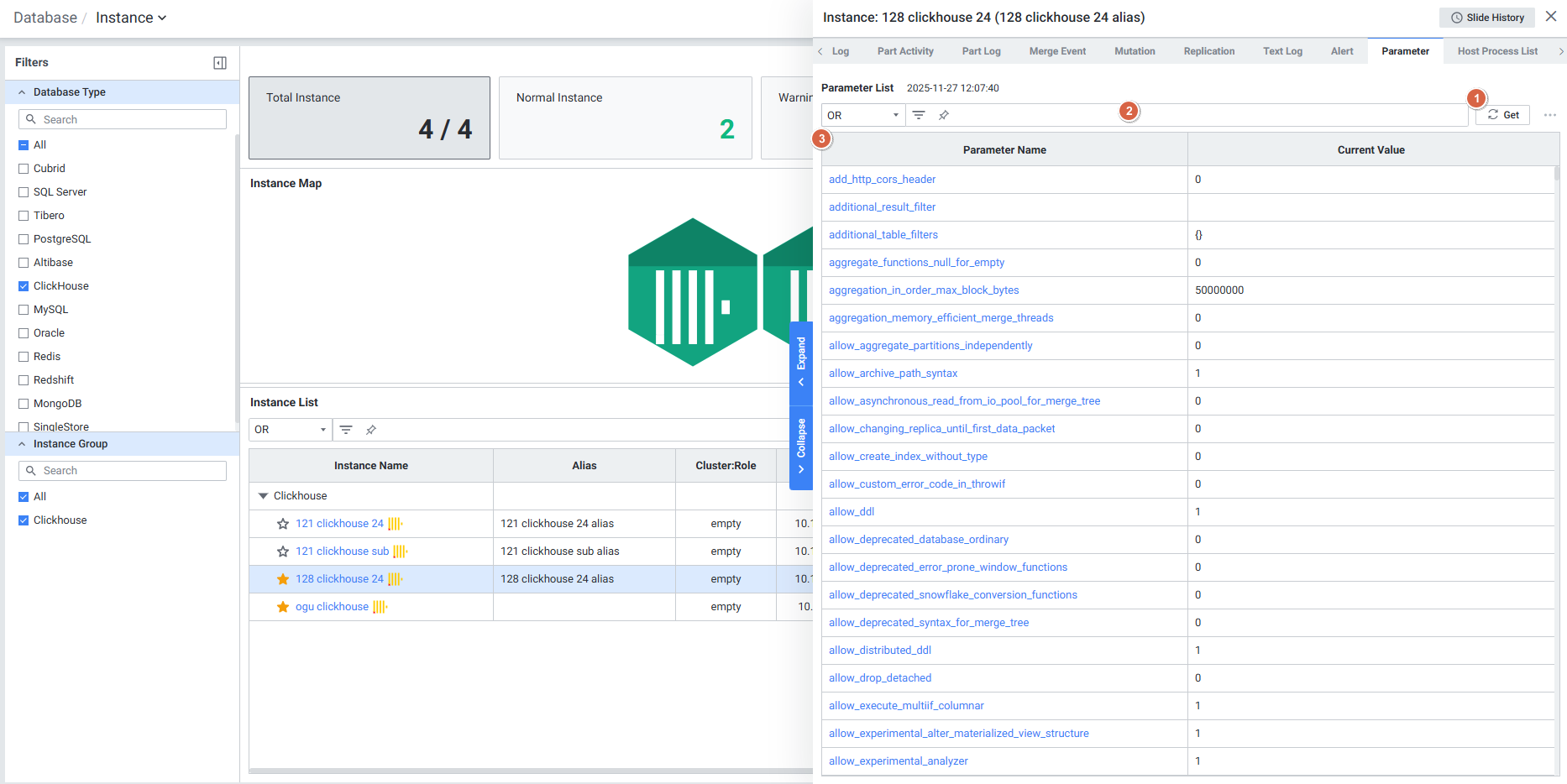 참고 문서: Instance Detail Slide - ClickHouse, ClickHouse 인스턴스 디테일 데이터 확인