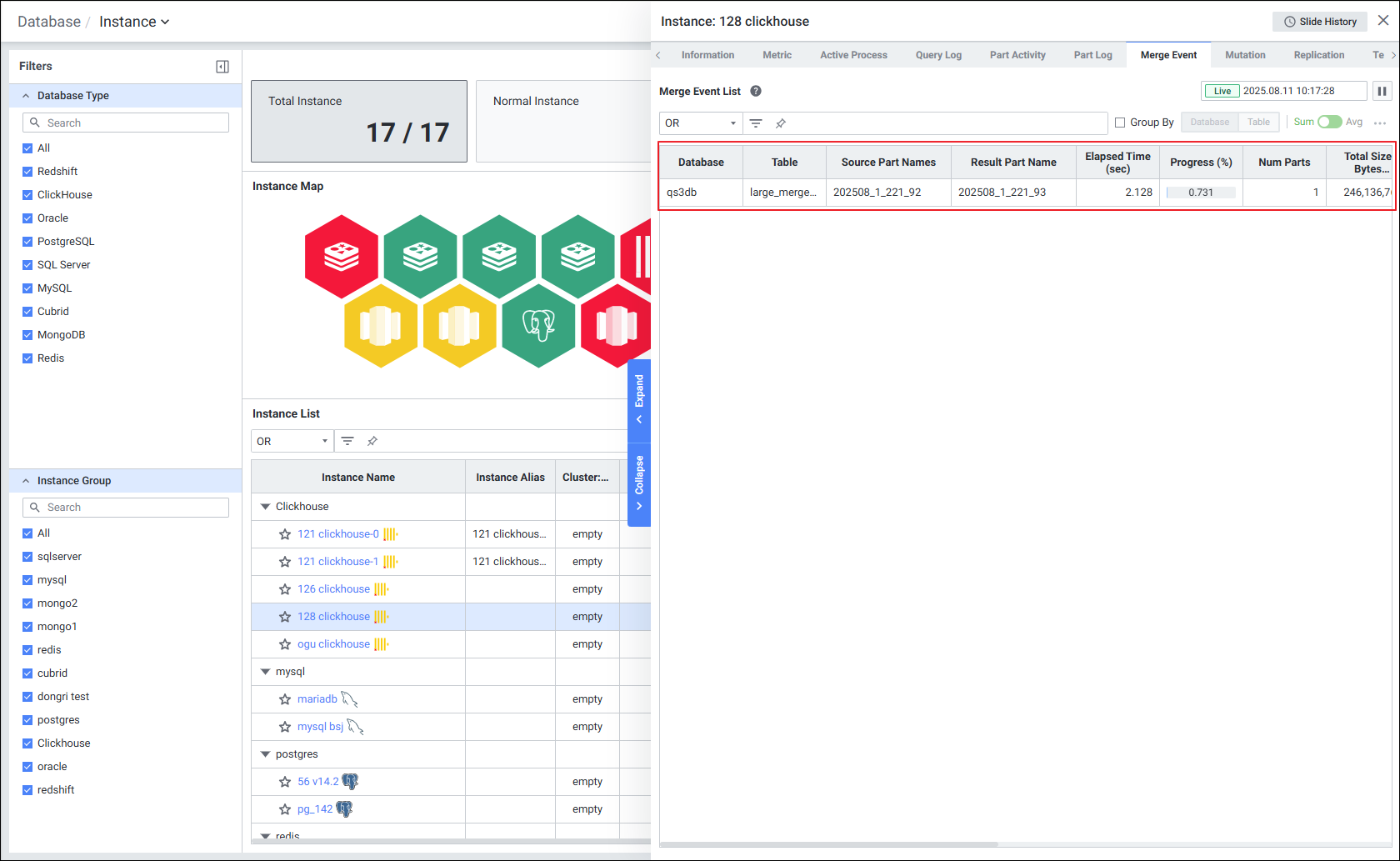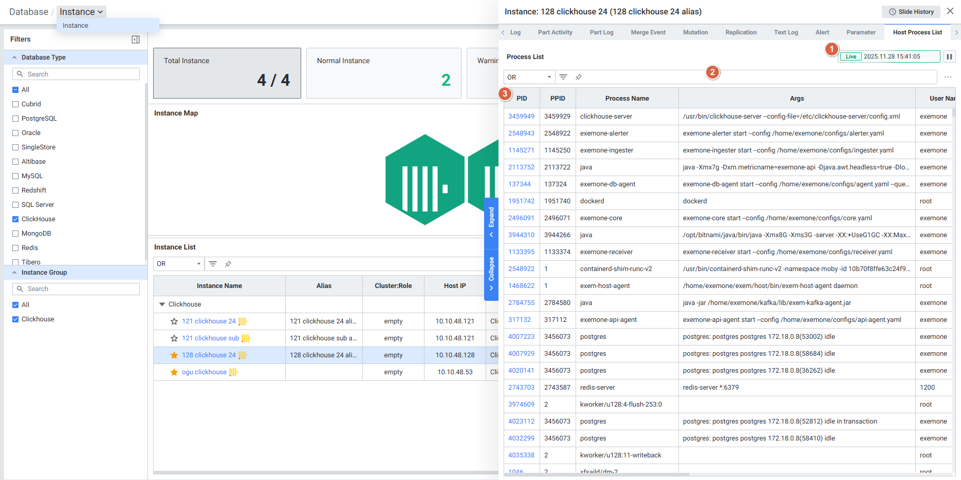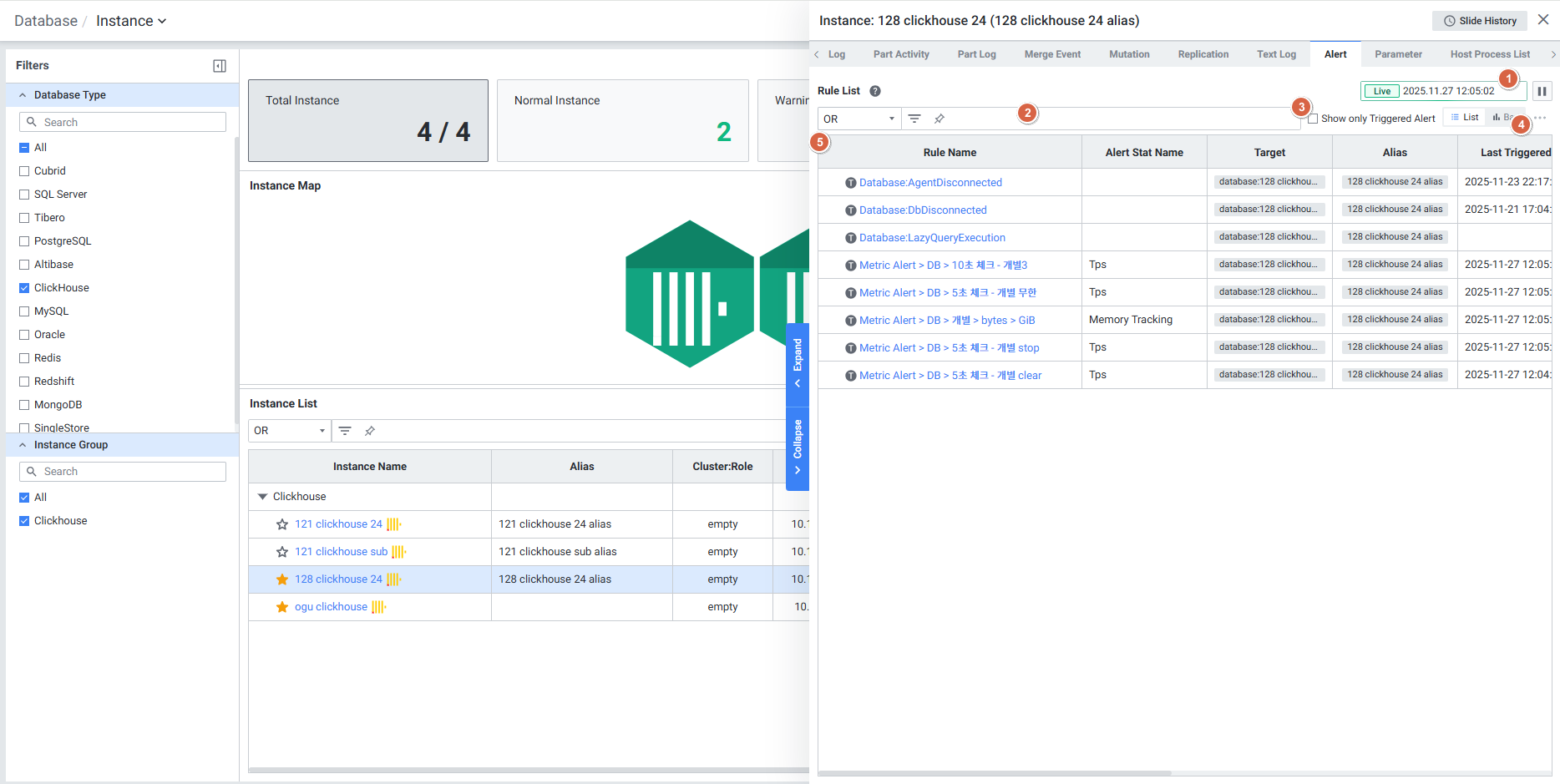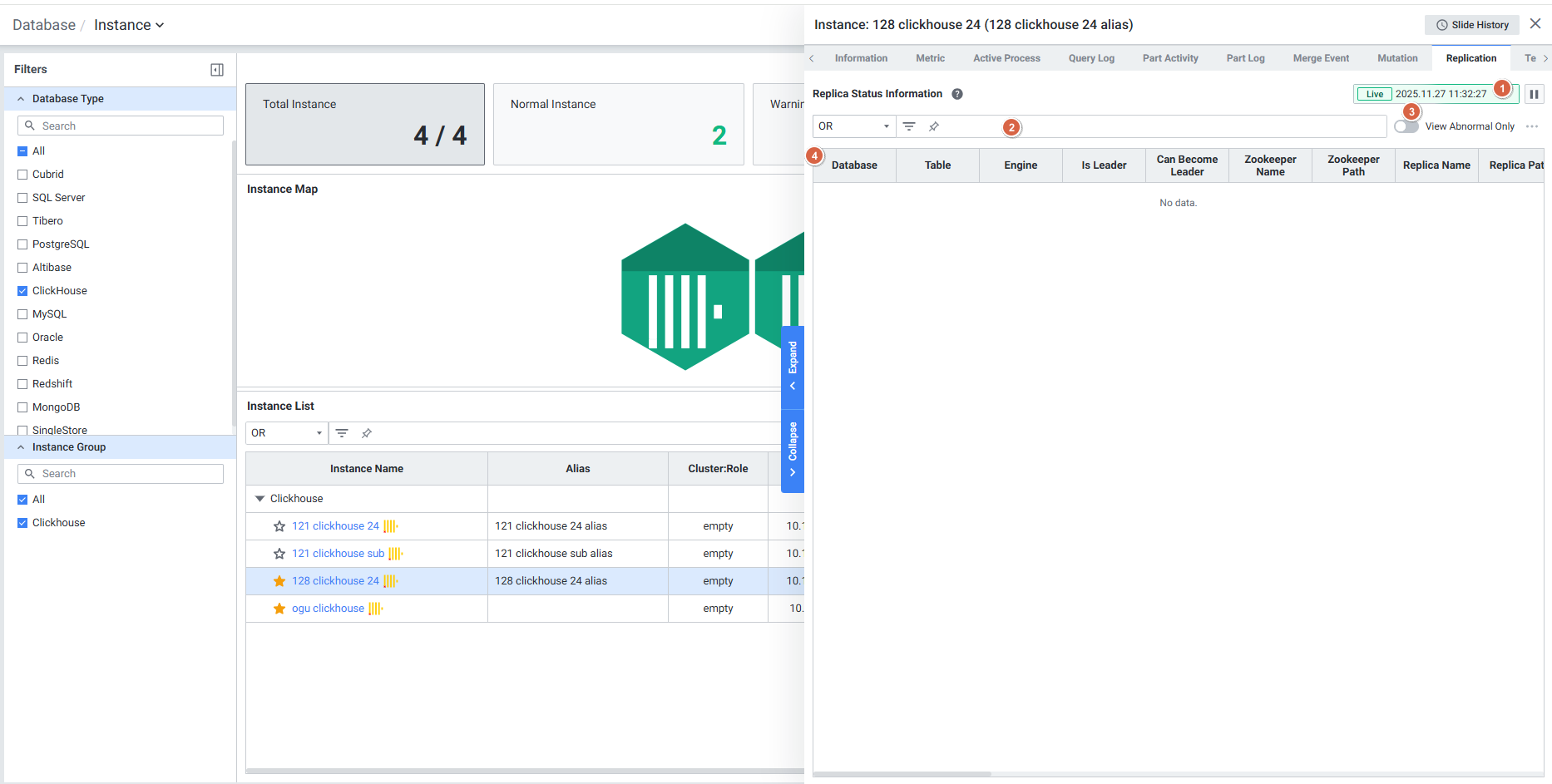 참고 문서: Instance Detail Slide - ClickHouse, ClickHouse 인스턴스 디테일 데이터 확인