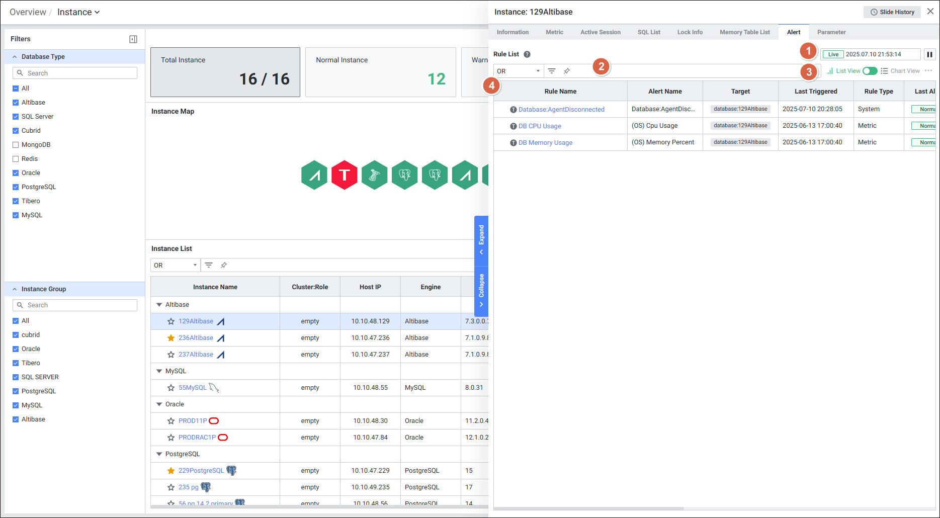 - Host Process List 탭은 해당 DB 서버에 Host Agent가 설치 및 설정되어 있어야 데이터를 확인할 수 있습니다.