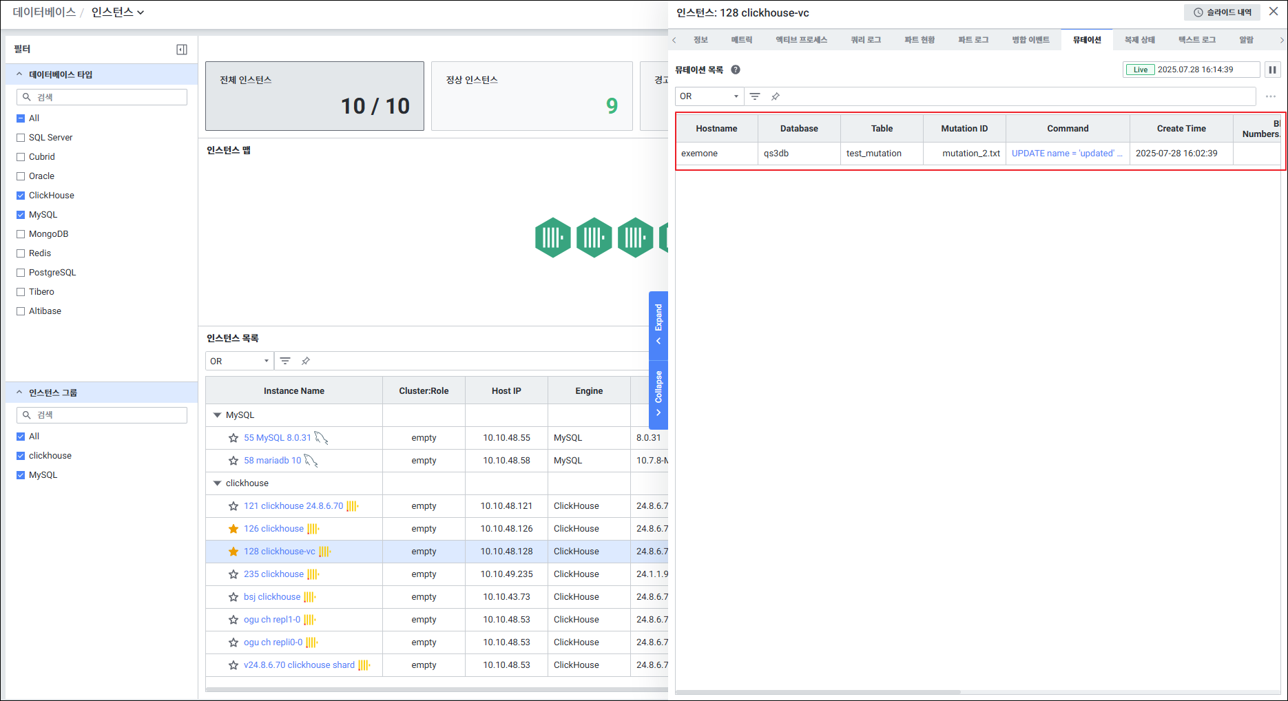 Mutation(변이) 작업 현황을 실시간 모니터링합니다.