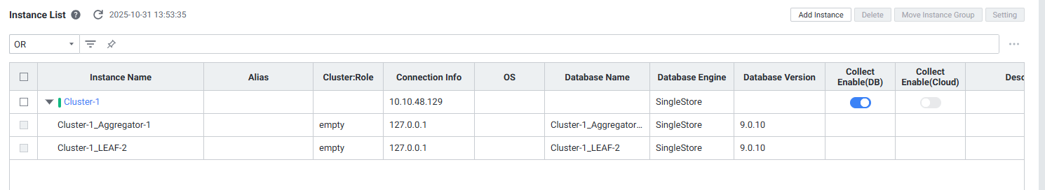 등록 완료 후 Instance List에서 등록된 SingleStore 인스턴스를 확인합니다.