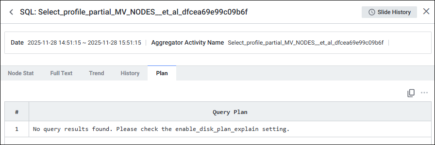 해당 파라미터가 비활성화(OFF)되어 있을 경우, Plan 조회 기능은 지원되지 않으며 아래와 같은 안내 문구가 출력됩니다: