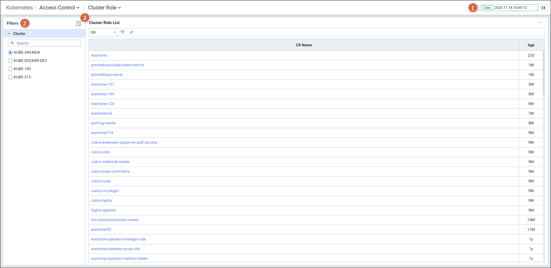 3Cluster Role ListCluster Role 목록을 보여줍니다.