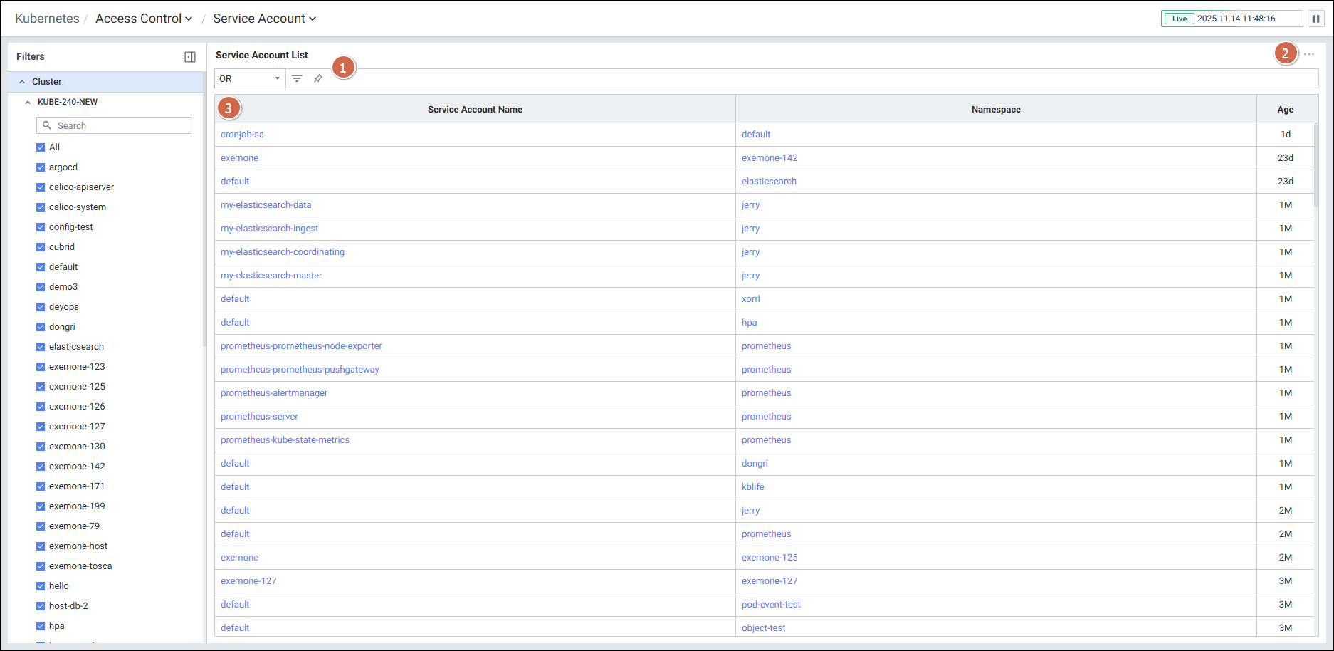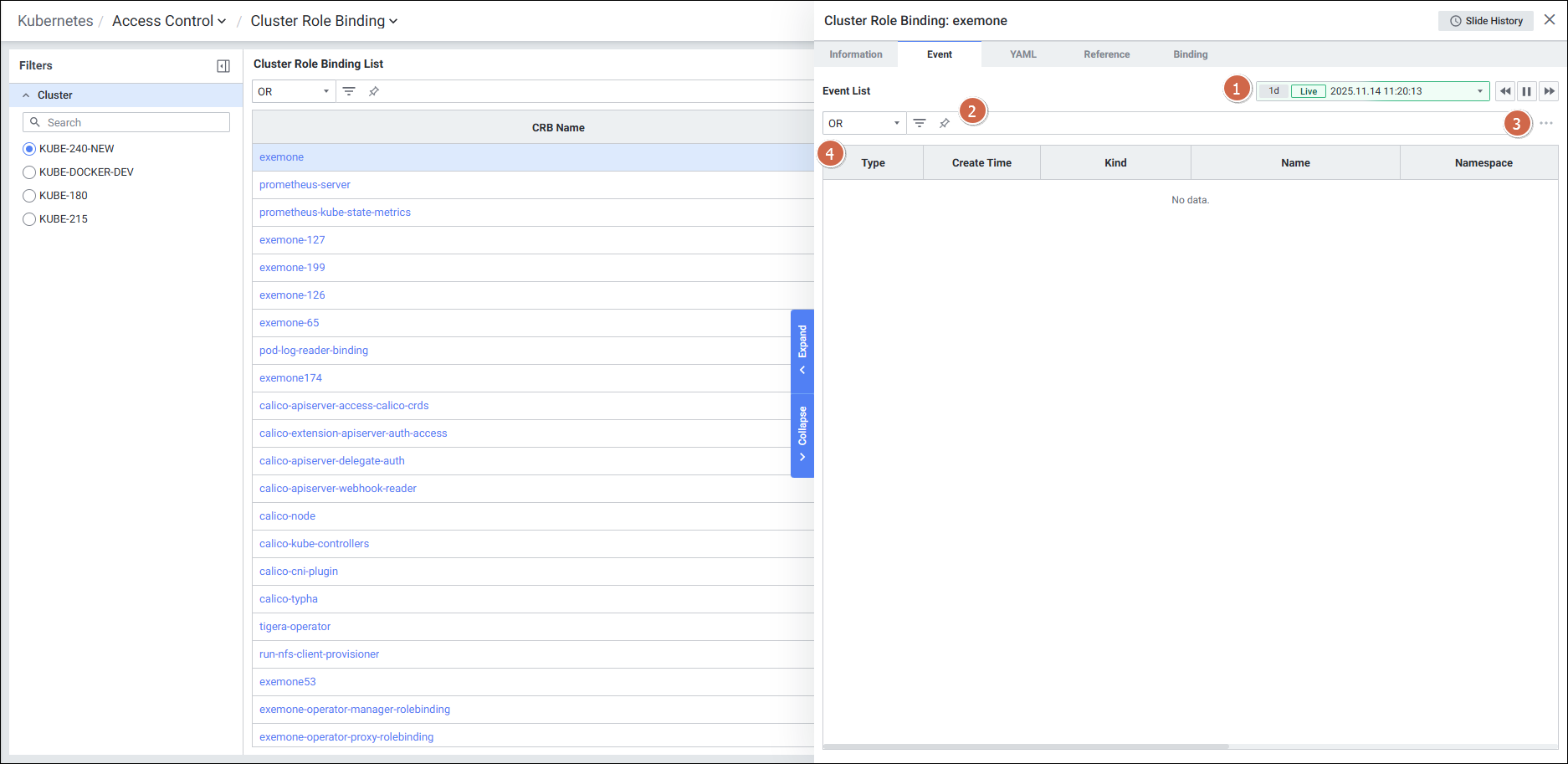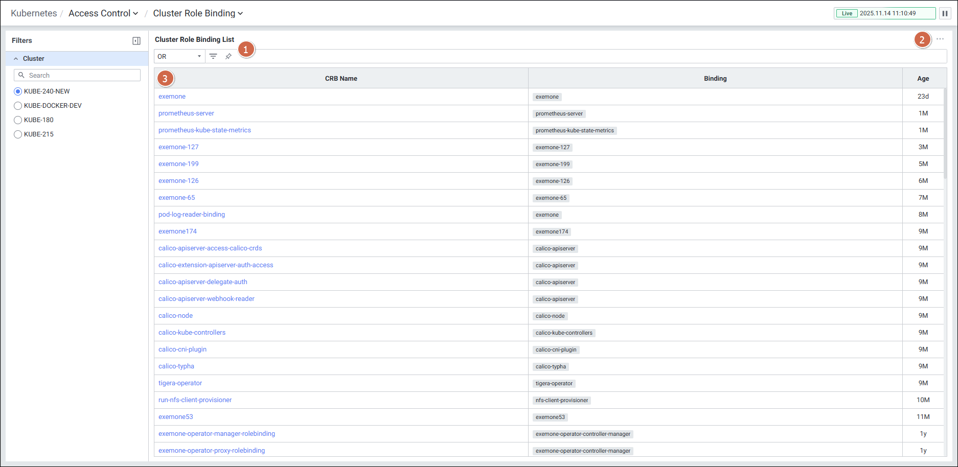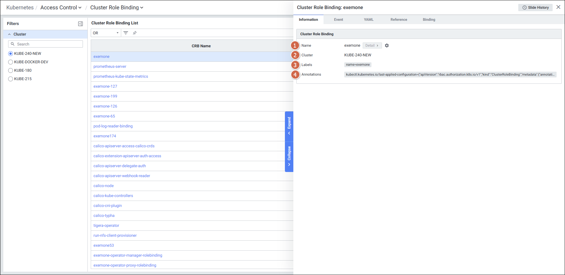 3Cluster Role Binding ListCluster Role Binding 목록을 보여줍니다.