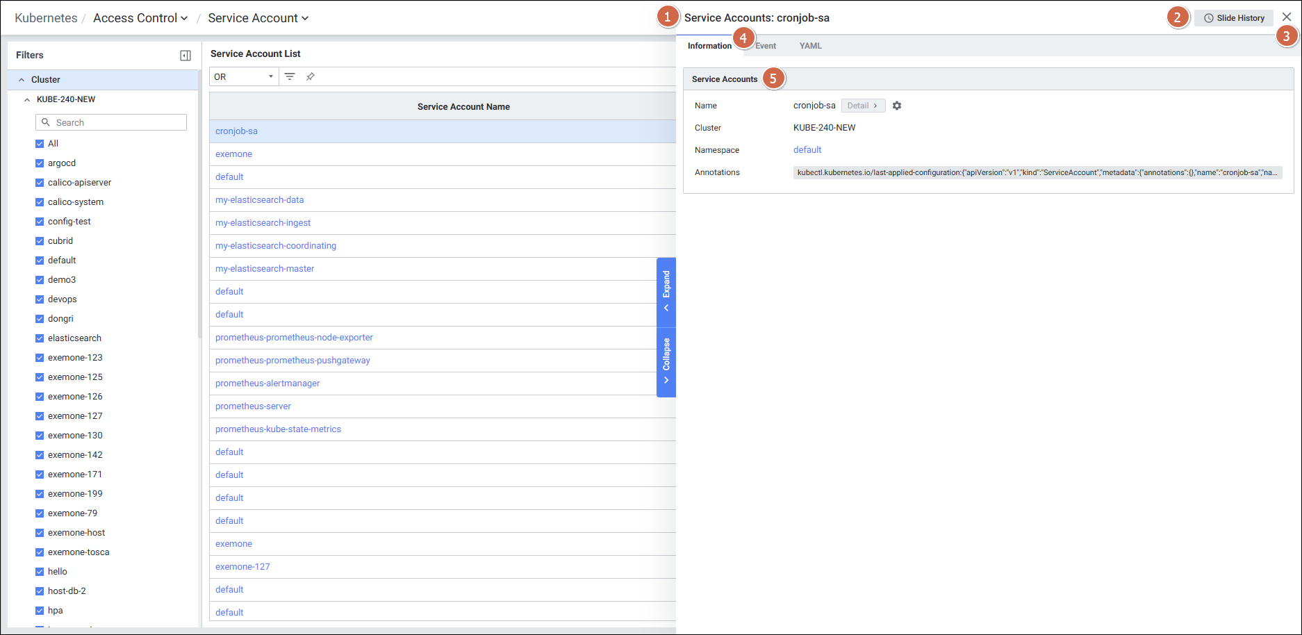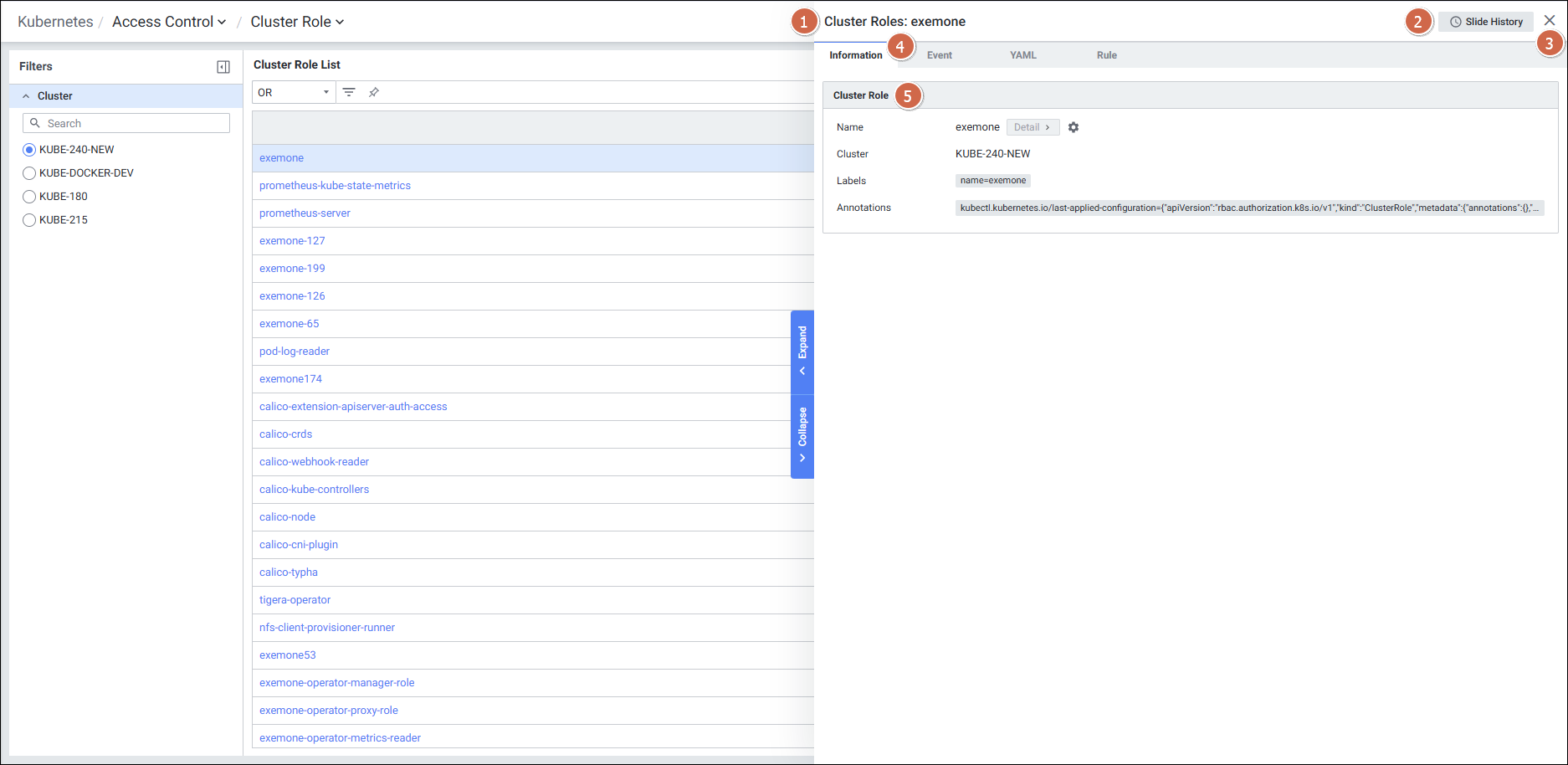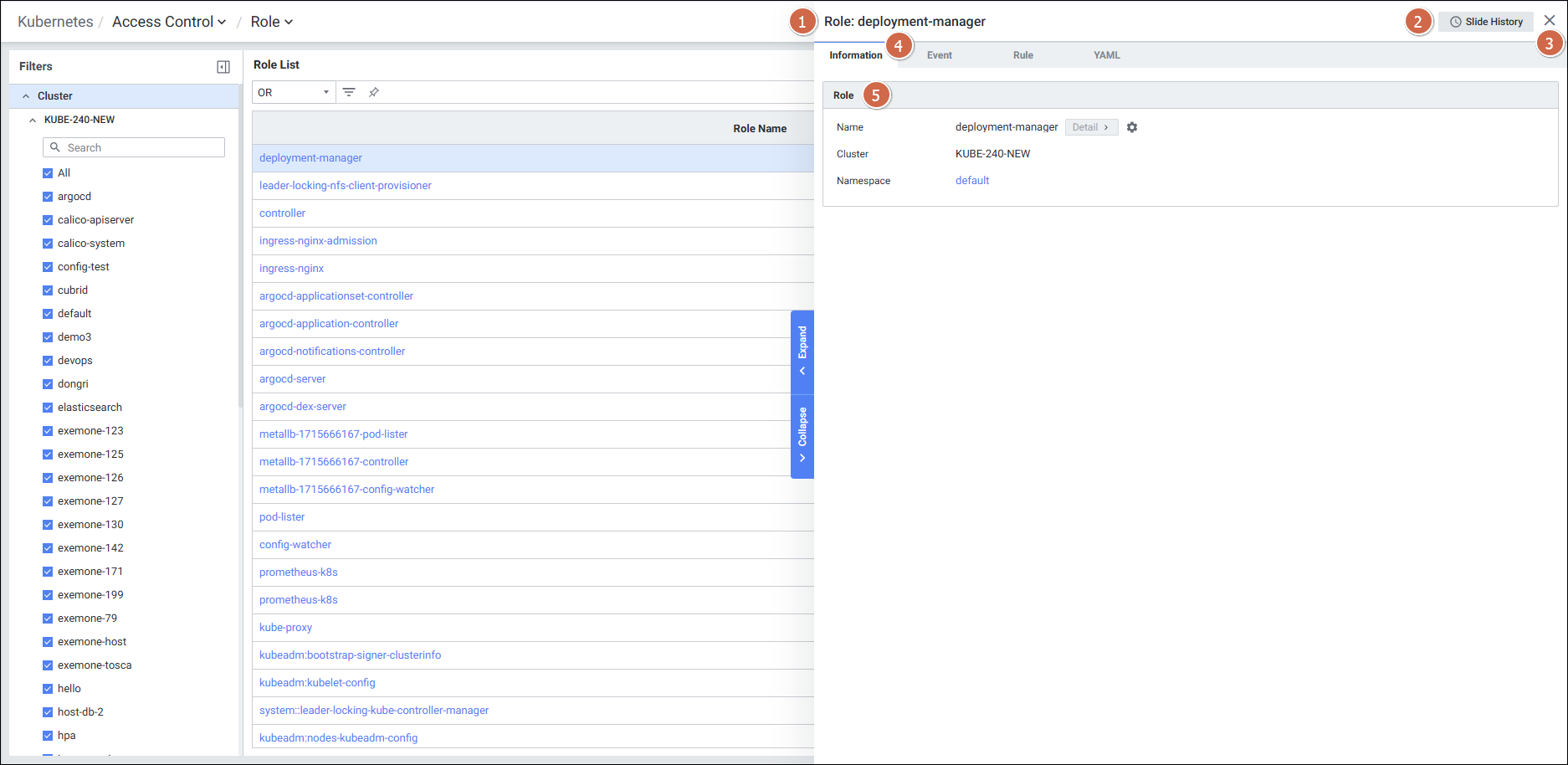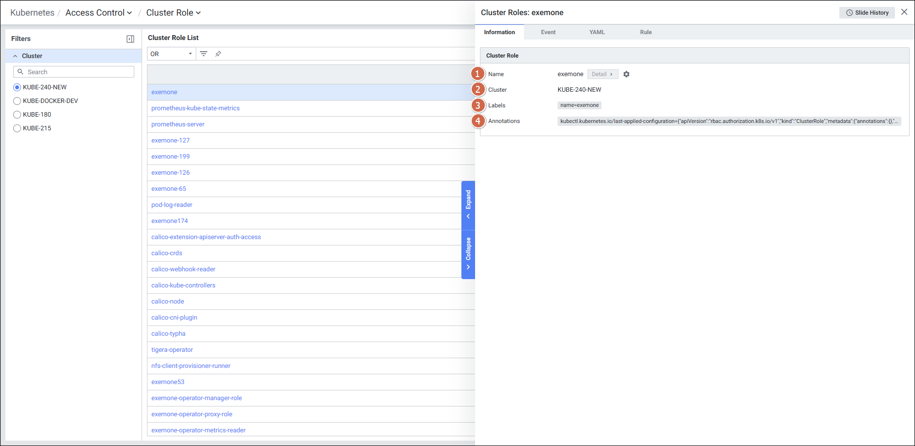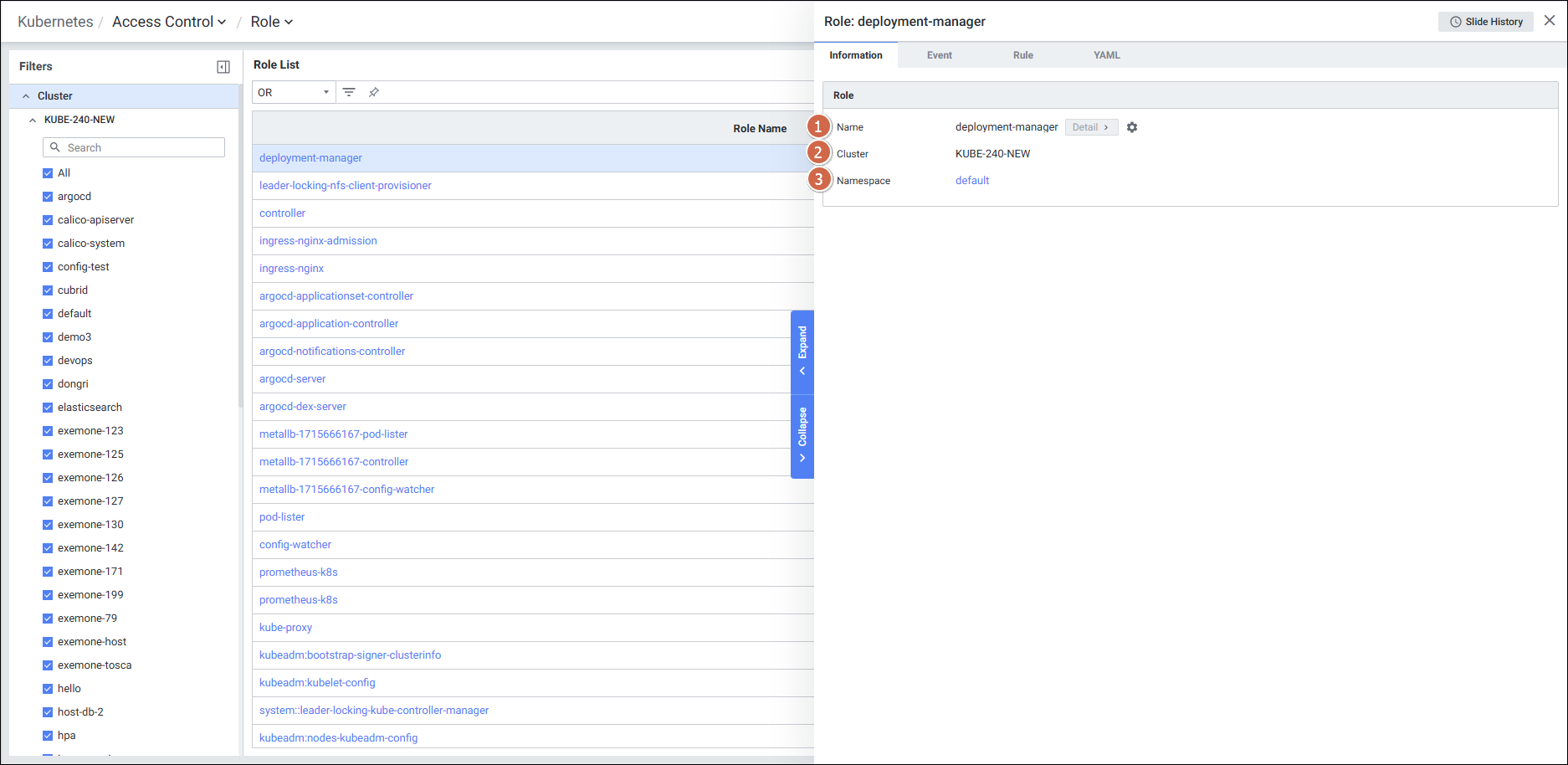 Cluster RoleCluster 전체 범위Information / Event / YAML / Rule