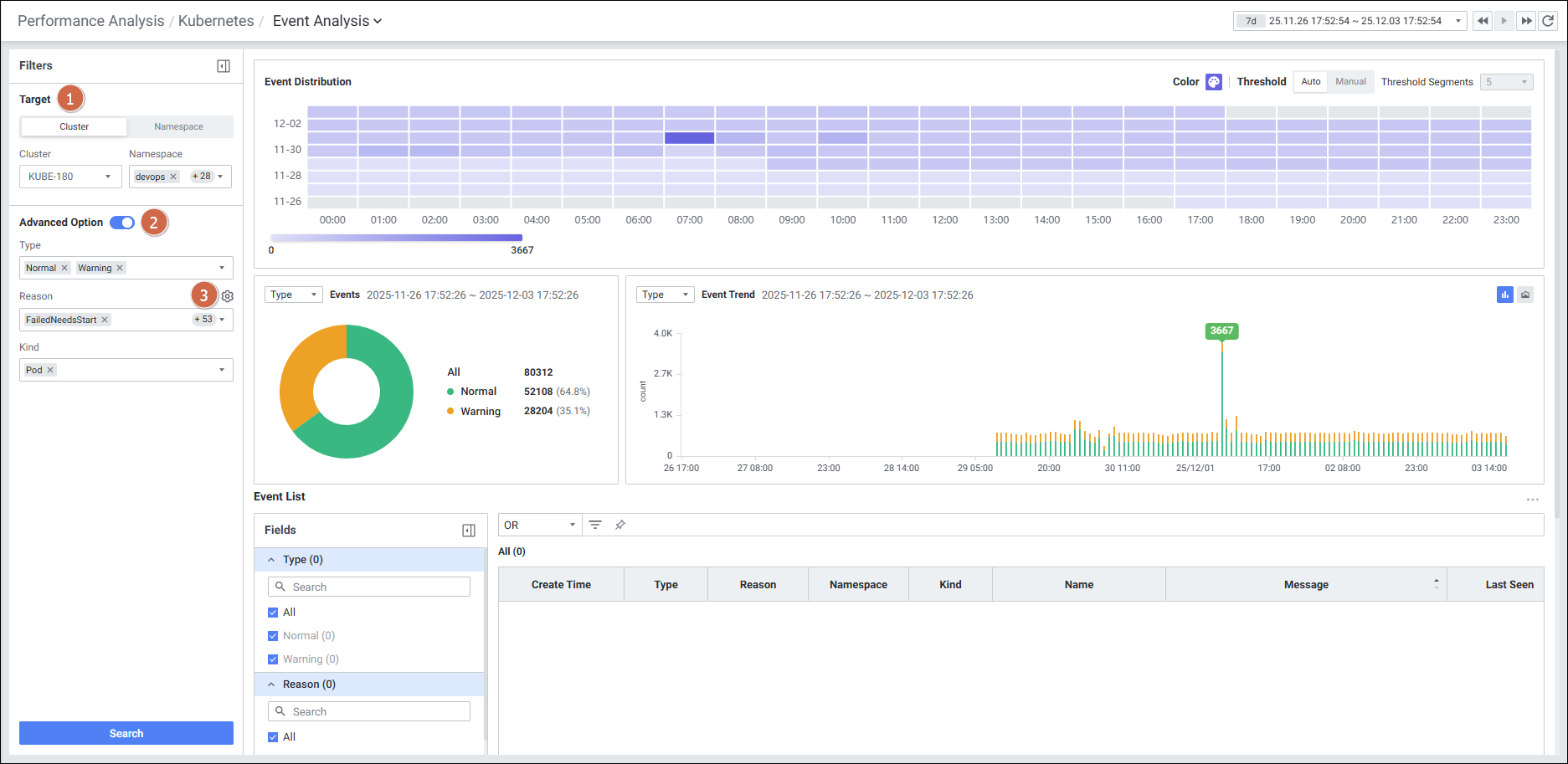 메뉴 경로: Performance Analysis > Kubernetes > Event Analysis