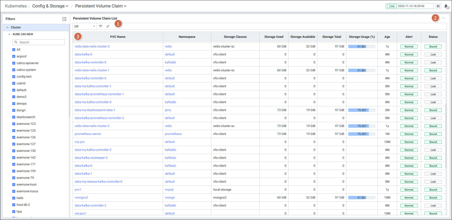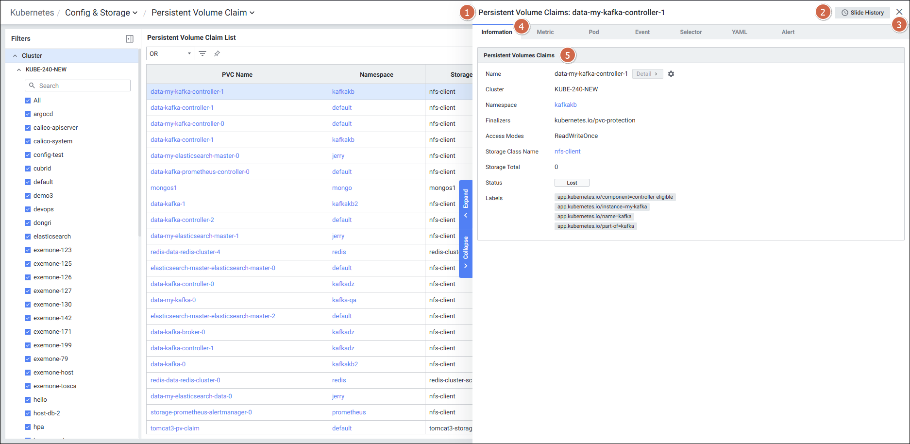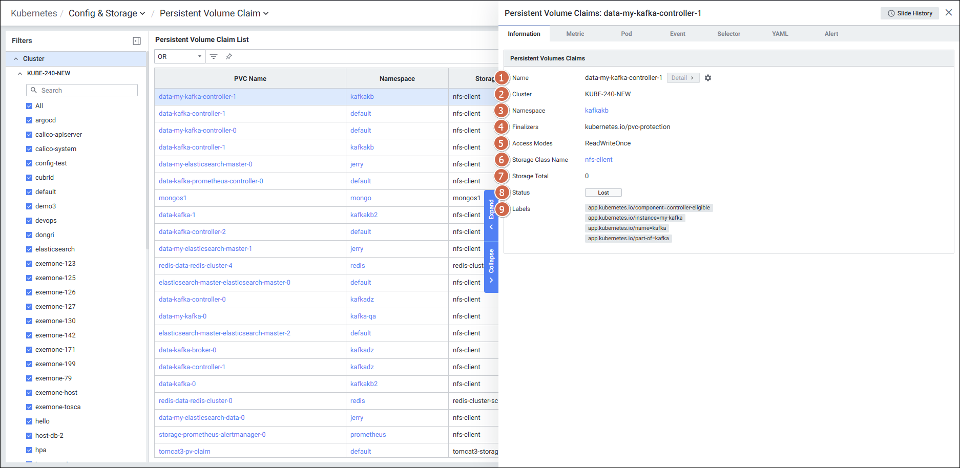 | 3 | Persistent Volume Claim List | PVC 목록을 보여줍니다. |