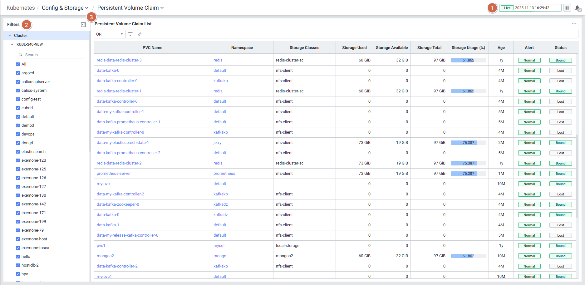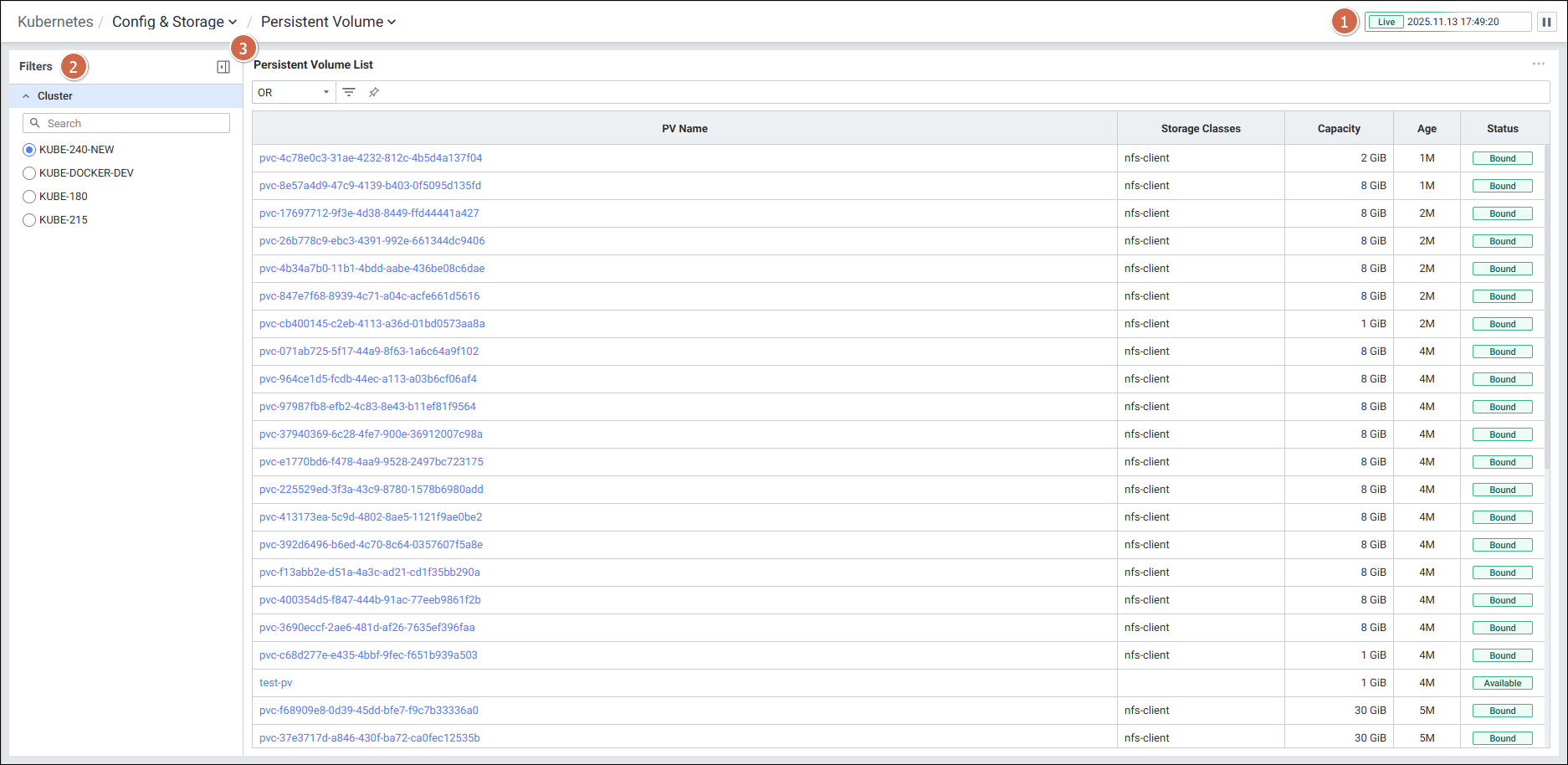 | 3 | Persistent Volume Claim List | PVC 목록을 Grid 형태로 보여줍니다. |