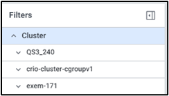 Cluster클러스터 하위의 필터 항목을 보여줍니다. 클릭 시 클러스터 항목을 접힌 상태로 보여줍니다.