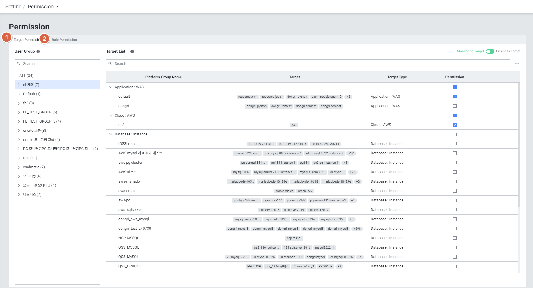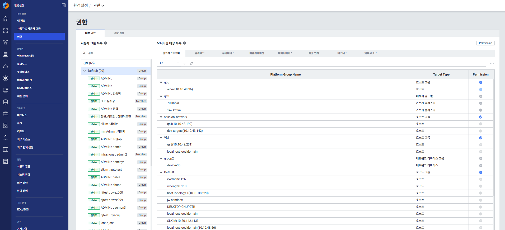 | Monitoring Target Permission | 사용자가 모니터링할 수 있는 타겟 권한 설정 |