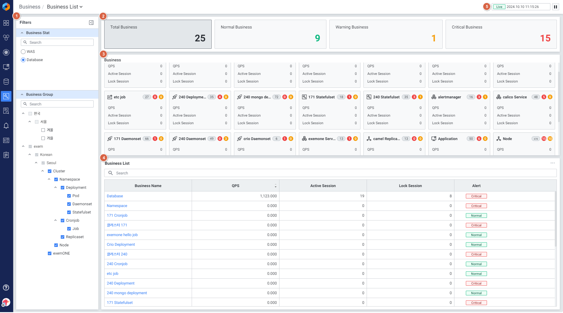 WAS, Database 등 여러 타겟을 서비스(비즈니스) 단위로 그룹화하여 모니터링할 수 있습니다.