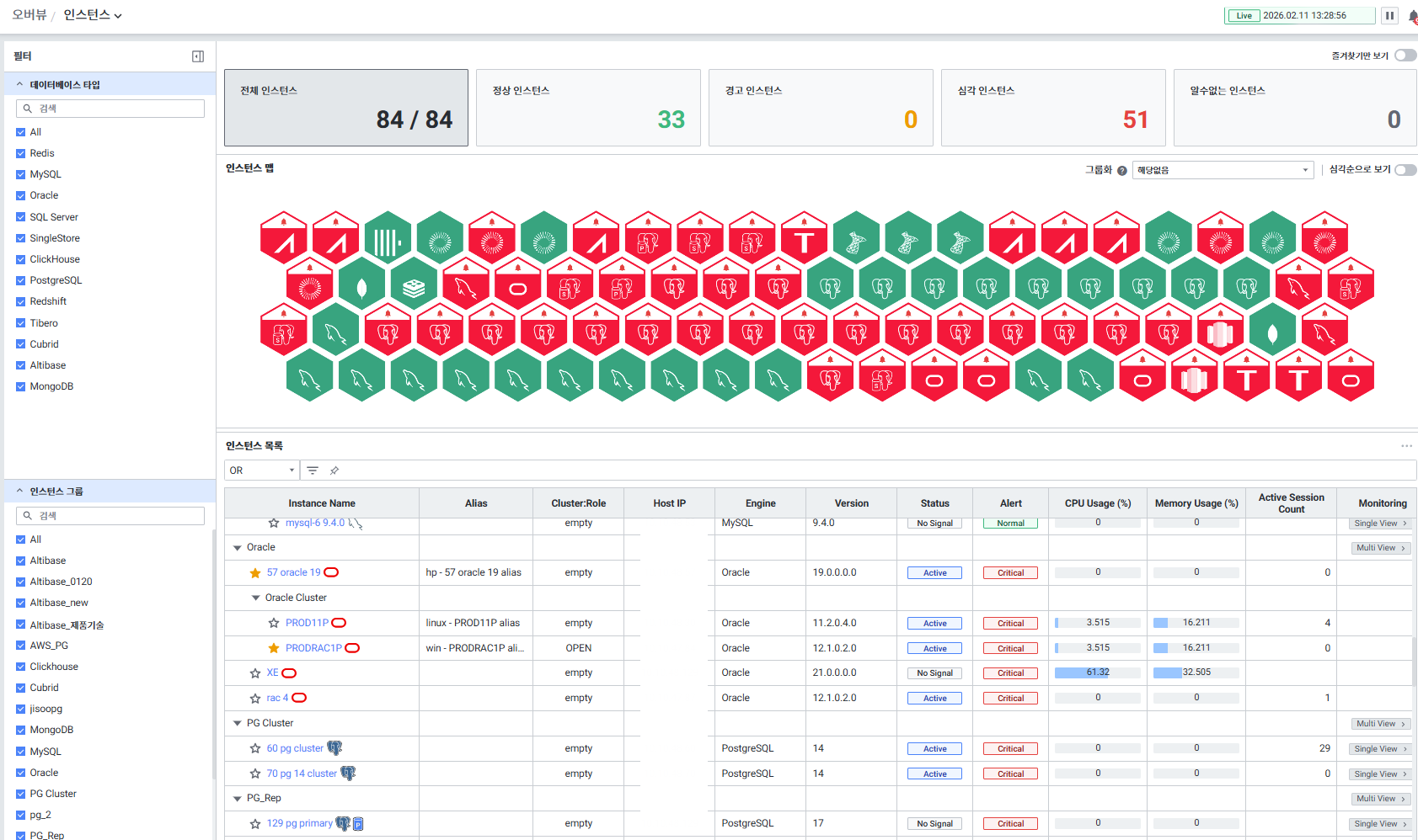 • Database 기본 뷰에서 Active / No Signal 확인