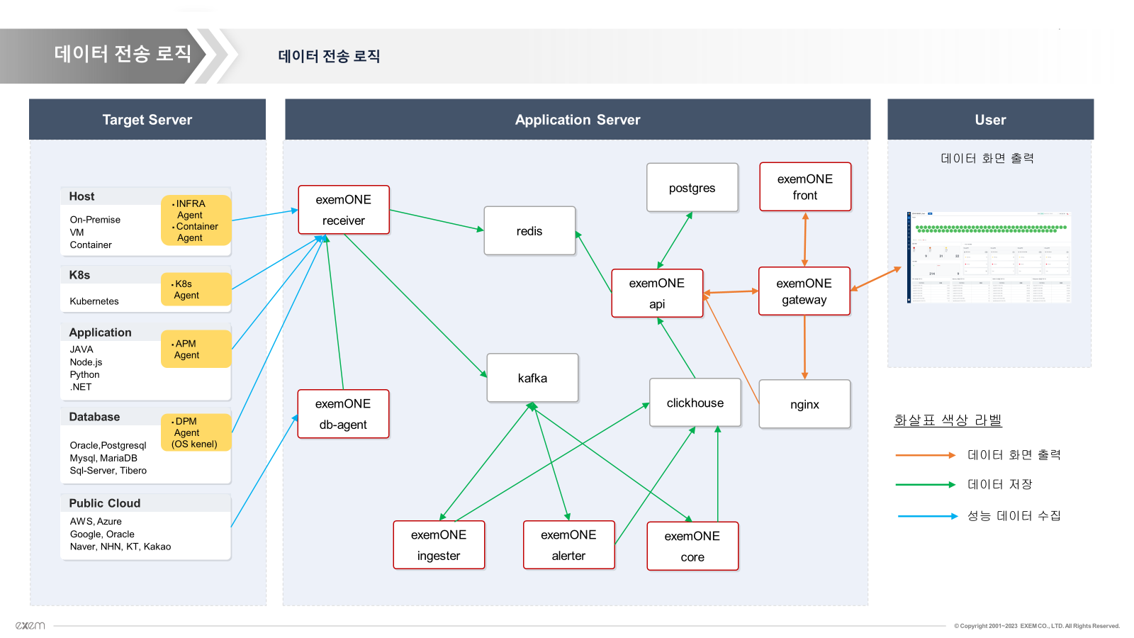 exem-k8s-agent모니터링 대상 장비수집서버 (Receiver)gRPC9009범용 gRPC 요청 및 응답