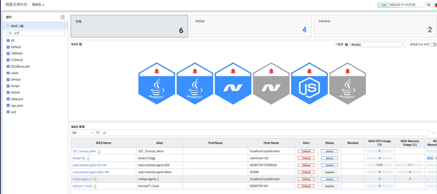 • WAS 기본 뷰에서 Active 확인
