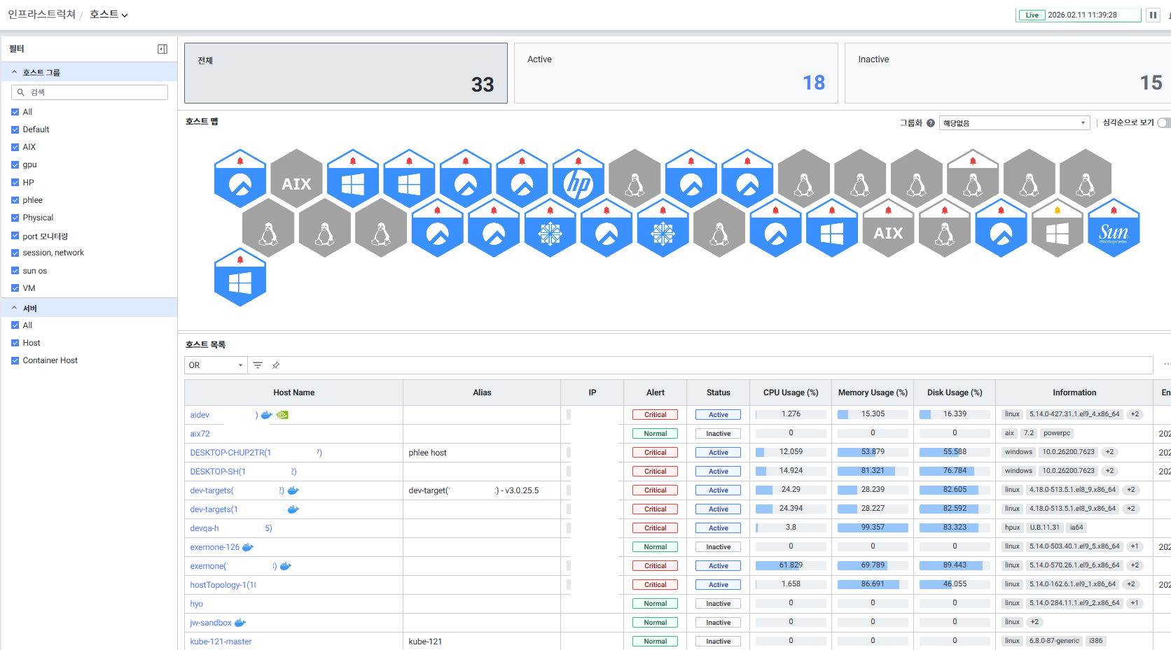• HOST 기본 뷰에서 Active / Inactive 확인