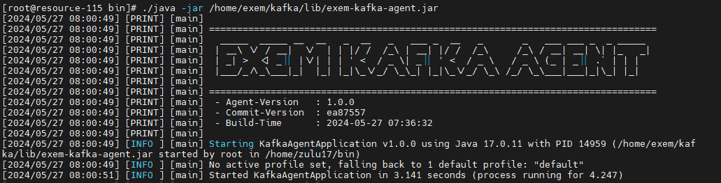 java -jar {패키지_경로}/exem/kafka/lib/exem-kafka-agent.jar