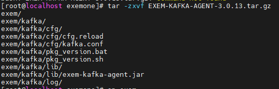 tar -zxvf EXEM-KAFKA-AGENT-{VERSION}.tar.gz