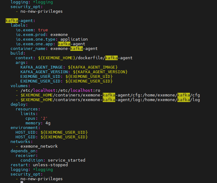 - $EXEMONE_HOME/containers/exemone-kafka-agent/log:/home/exemone/kafka/log