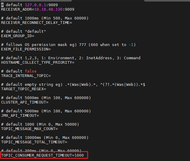 TOPIC_CONSUMER_REQUEST_TIMEOUT | Topic Message 조회 타임아웃 | - | - |