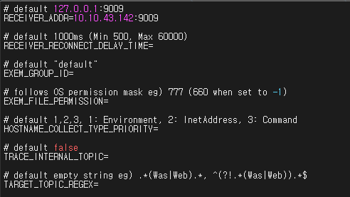 RECEIVER_ADDR에 수집서버 IP:PORT 정보를 입력합니다. (필수)