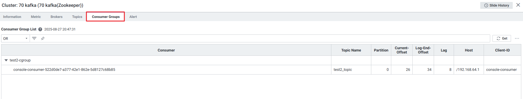 - 대시보드에서 Target이 Consumer Group인 지표(예: Cluster Consumer Total Lag)에서 필터링 됩니다.