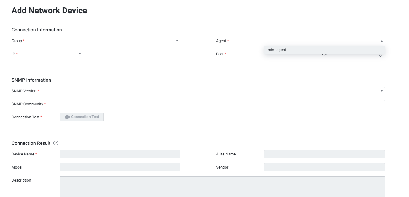NDM Agent 설치 후 모니터링할 네트워크 디바이스를 등록해야 합니다.