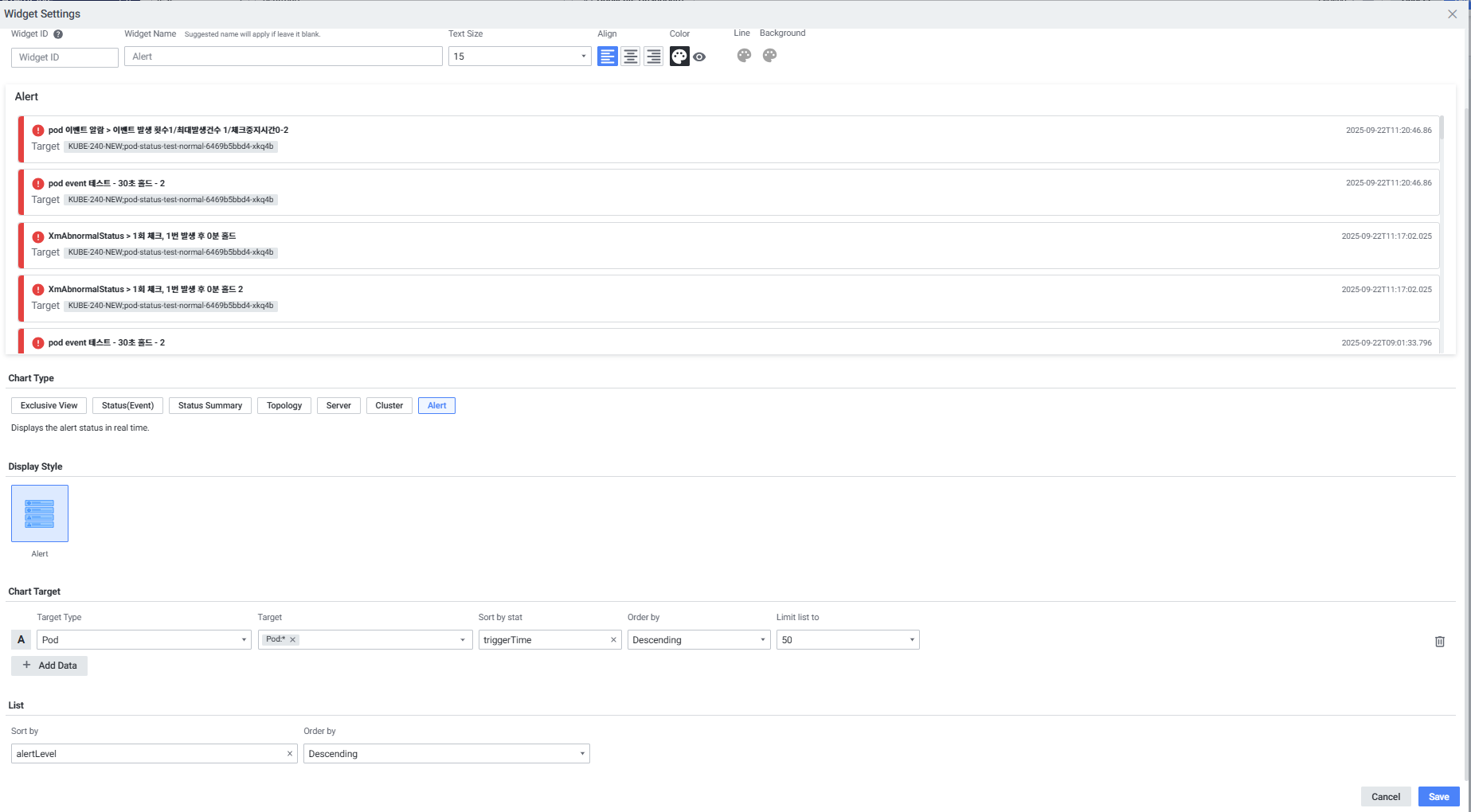 1-3. Alert 위젯 (Dashboard 내 Alert List 위젯)